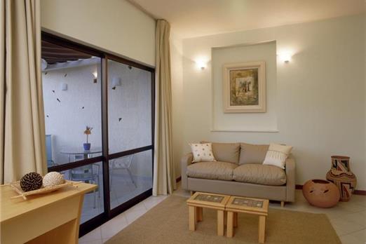 Dois ambientes - sala e quarto (Tamanho 44m²), ambos climatizados. Sala com sofá cama, minibar, tv LCD 32" e sacada com vista para a piscina...