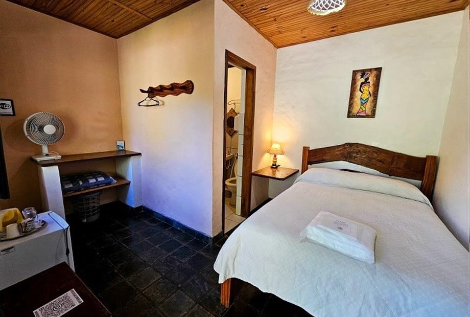 Quarto pequeno (cama de casal), aconchegante e para quem não precisa de tv. Possui frigobar, chaleira elétrica, janela com vista para o...