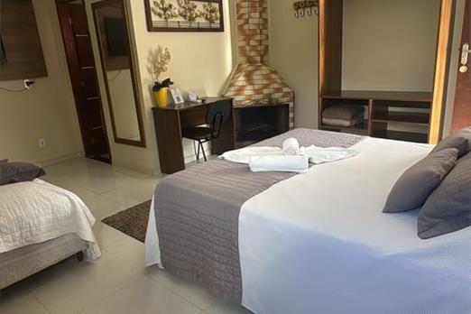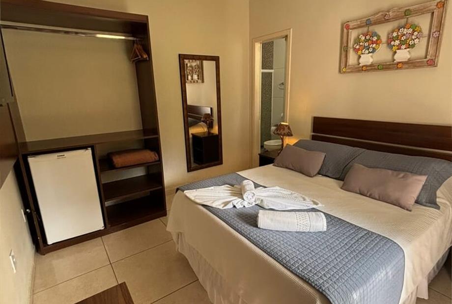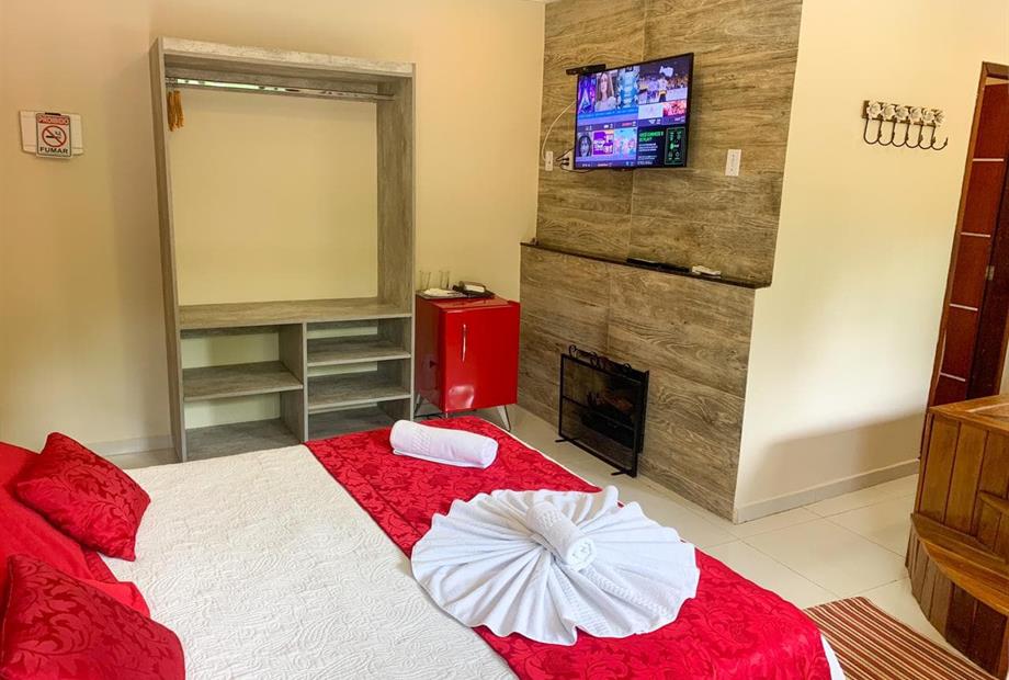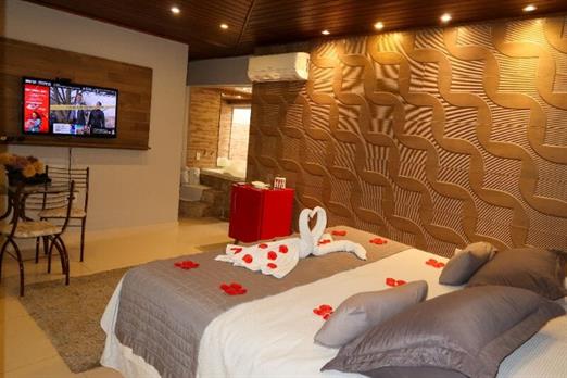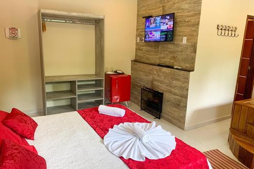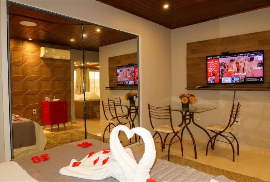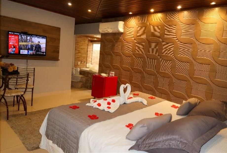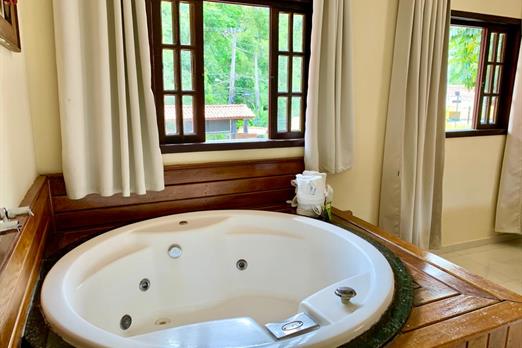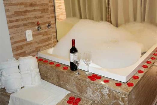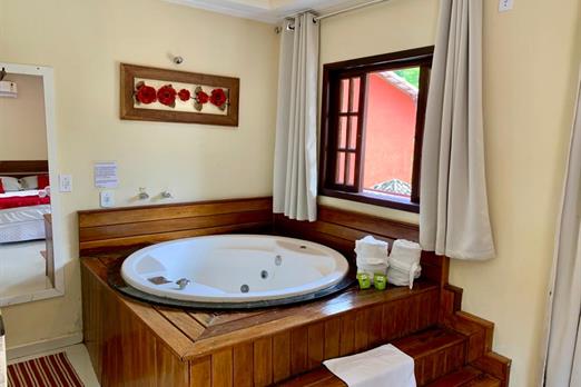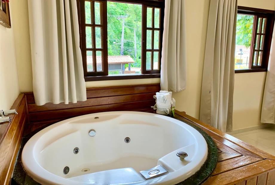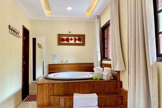 suíte com banheira de hidromassagem, cama king size, arara, mesa de jantar,ar condicionado, tv a cabo, frigobar, secador de cabelo e amenida...