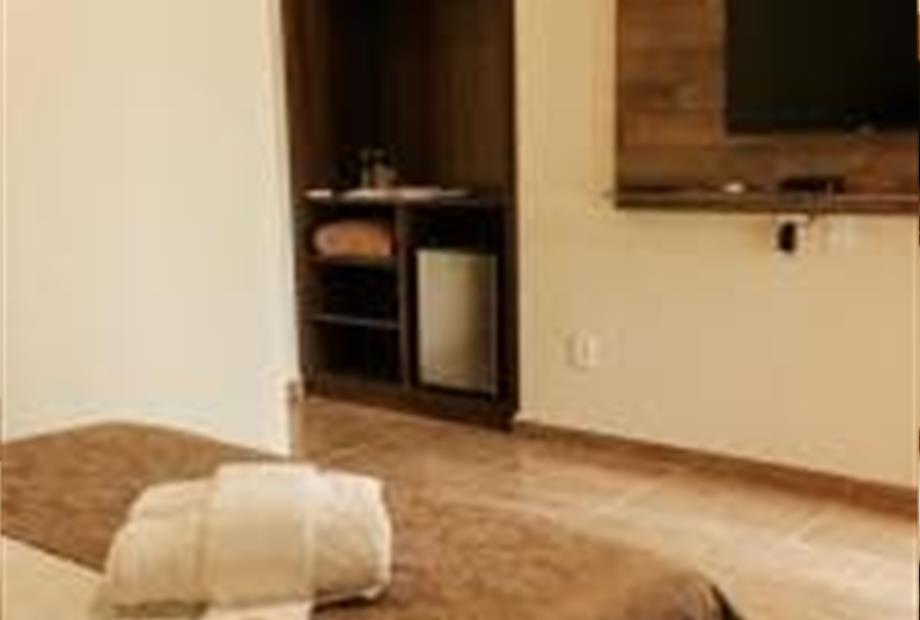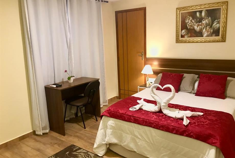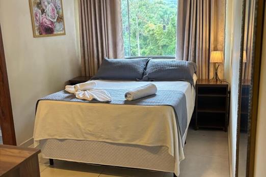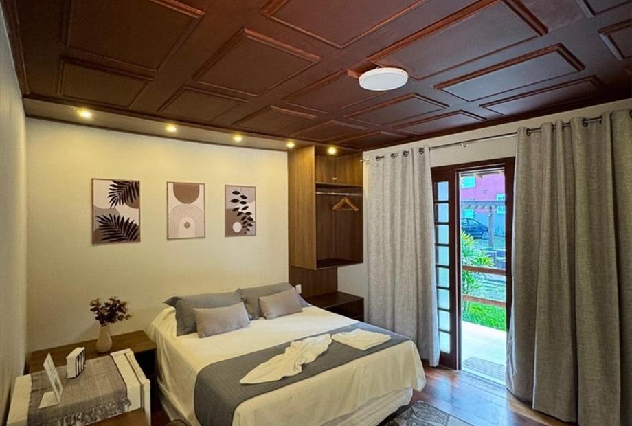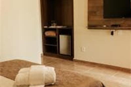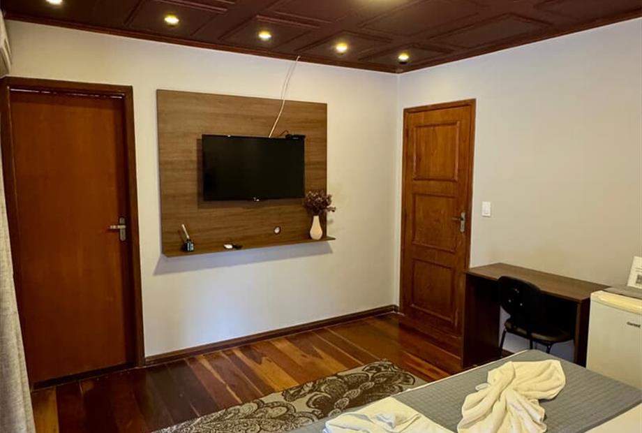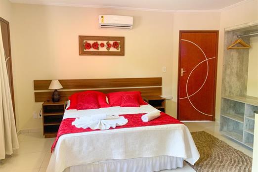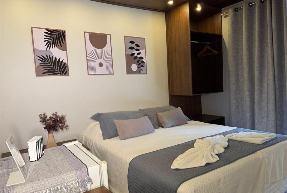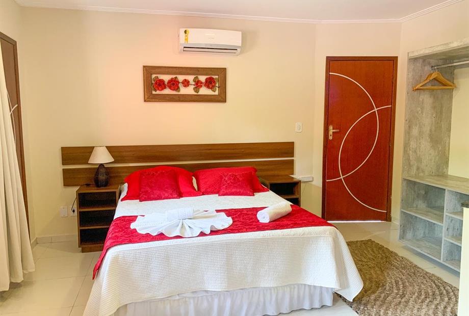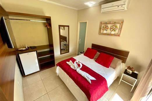 suíte com banheira de hidromassagem, cama king size, arara, mesa de jantar,ar condicionado, tv a cabo, frigobar, secador de cabelo e amenida...