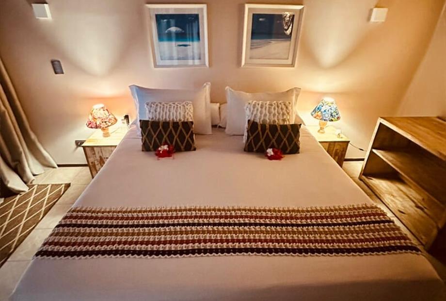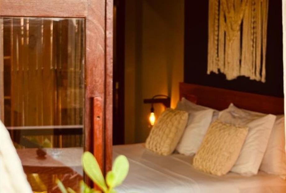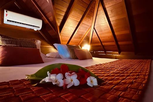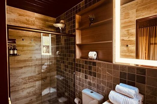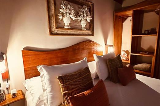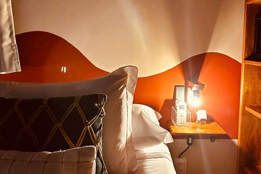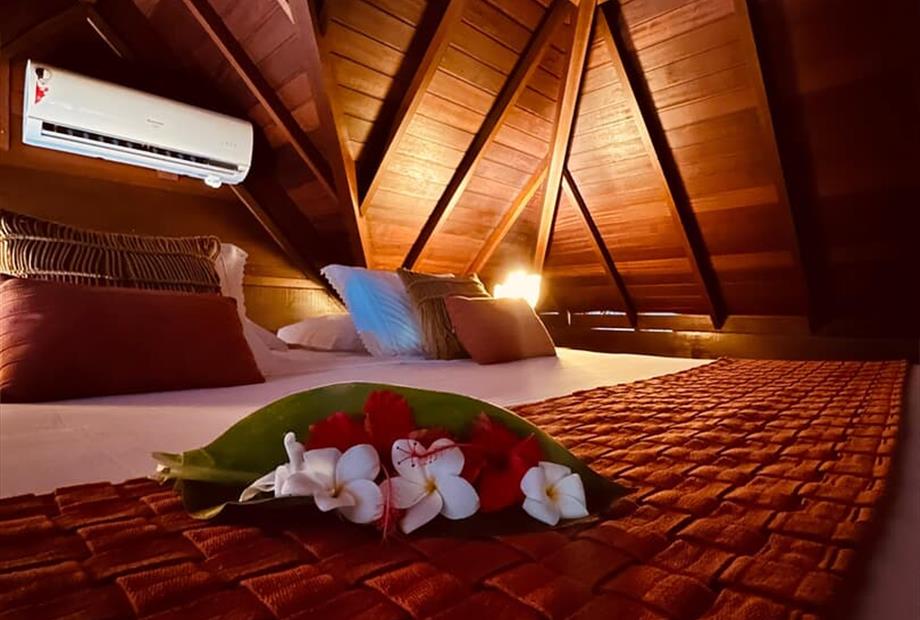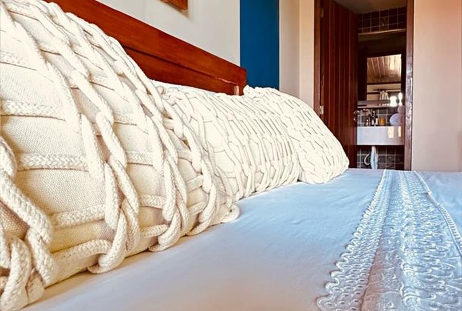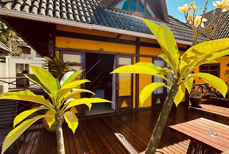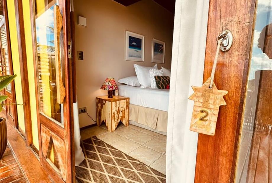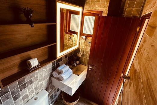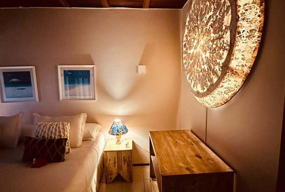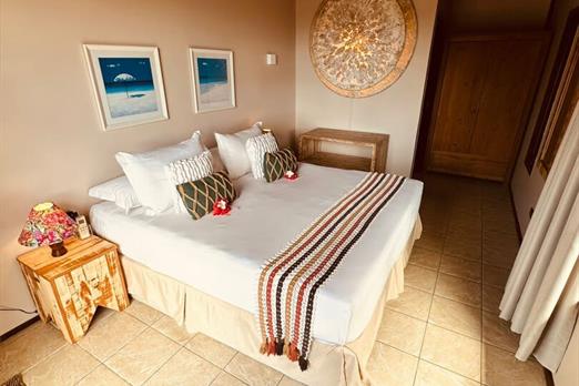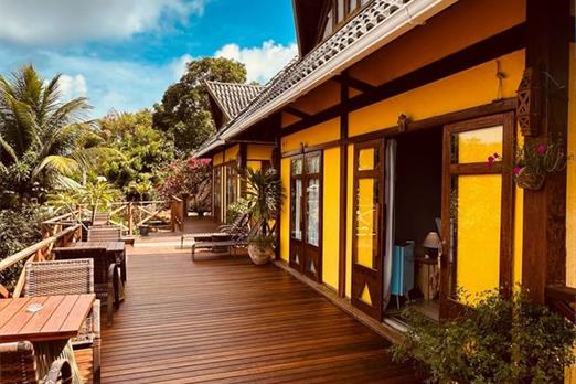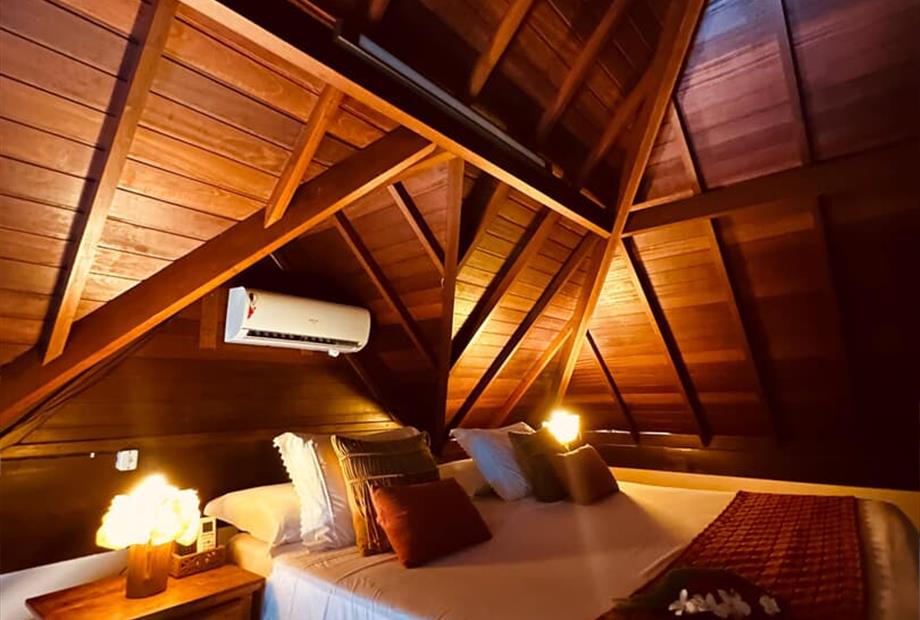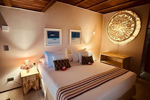 SUÍTE COM 02 AMBIENTES No andar superior da pousada com vista mar. - Ambiente Superior: 01 mezanino para casal com cama super king, ar-cond...