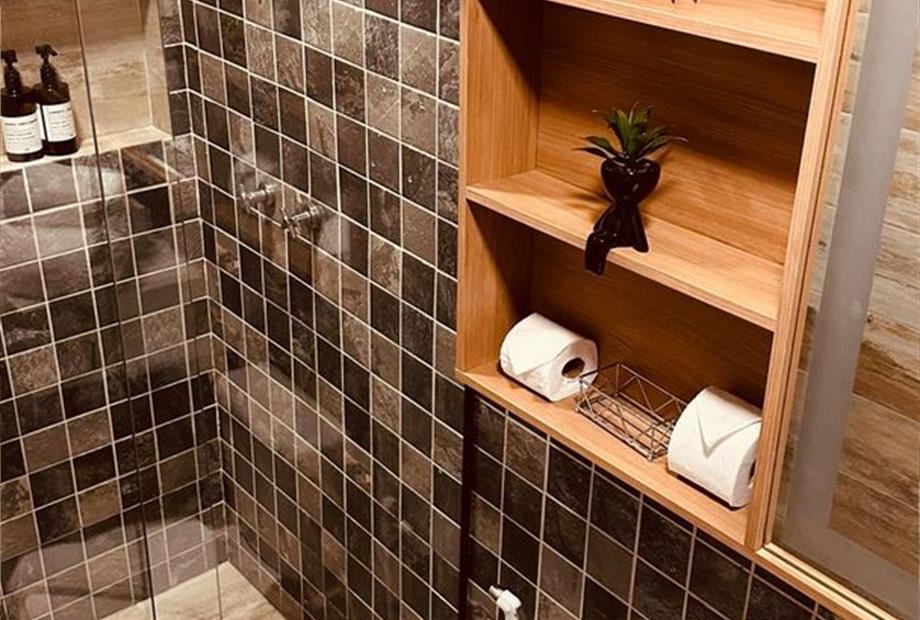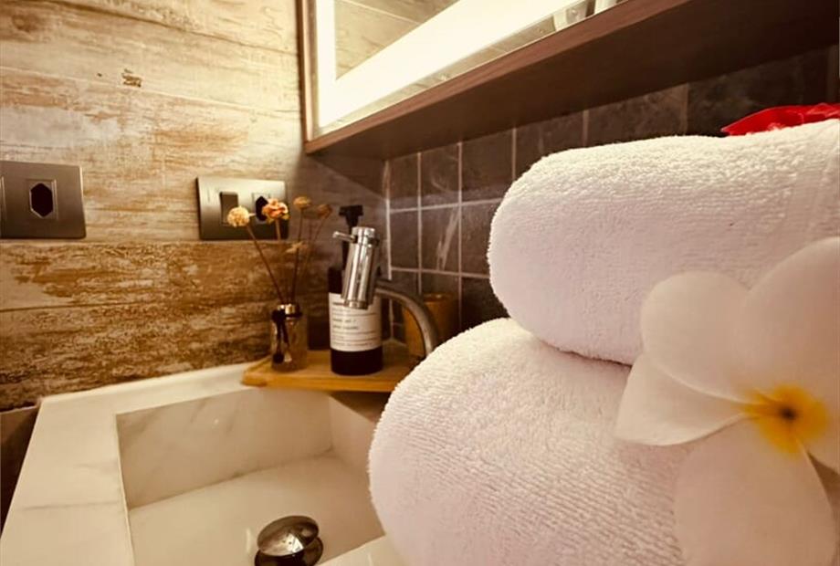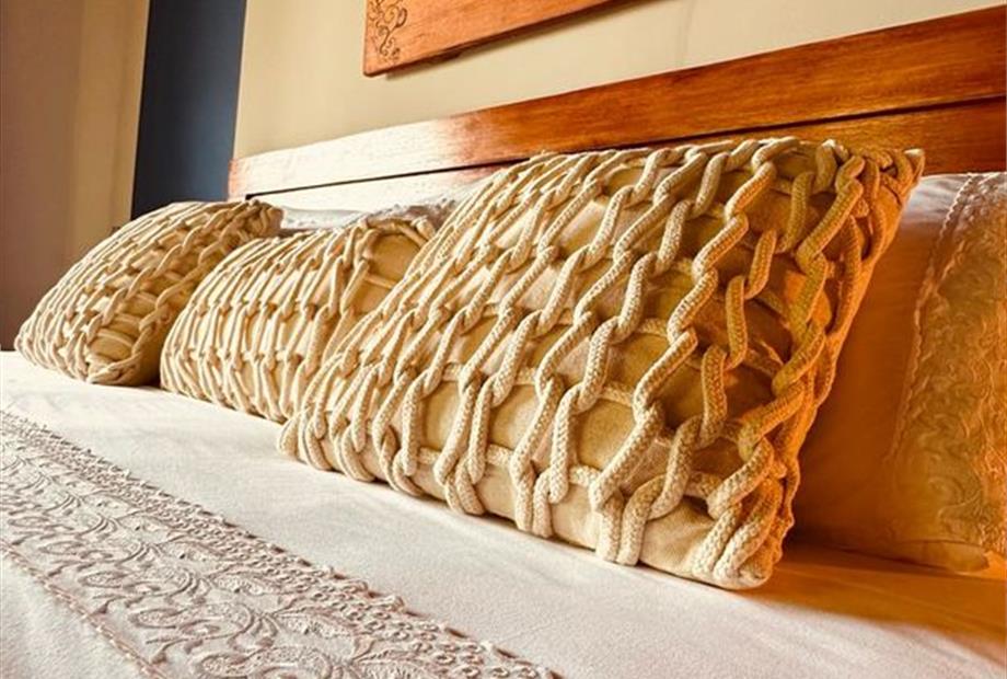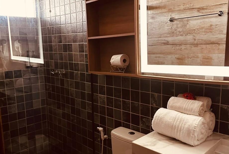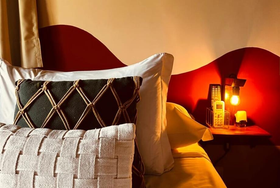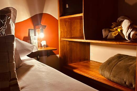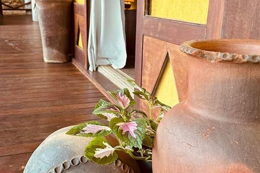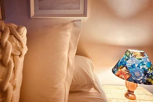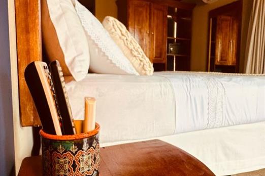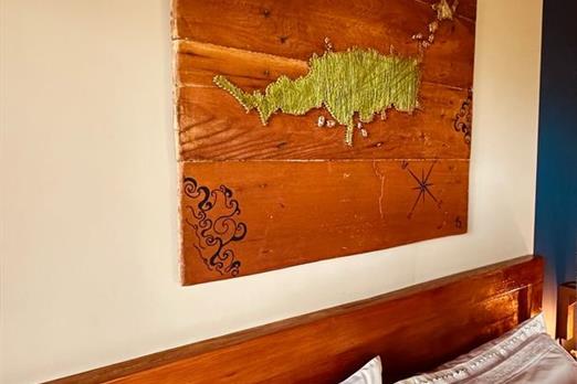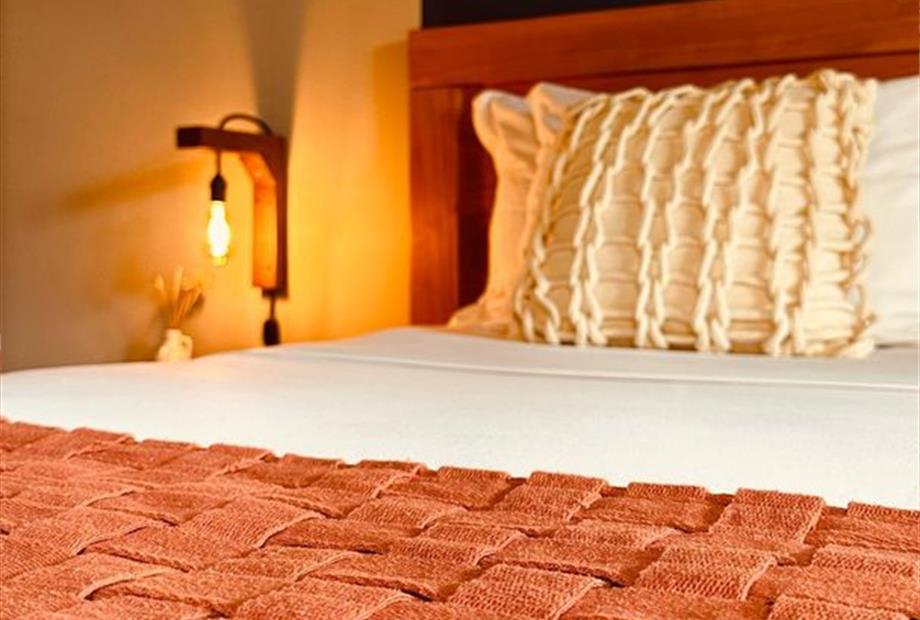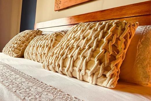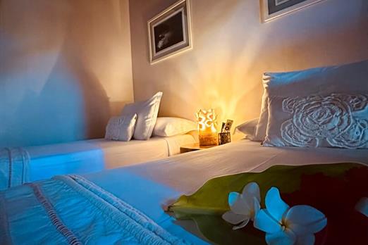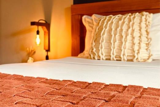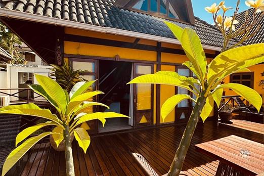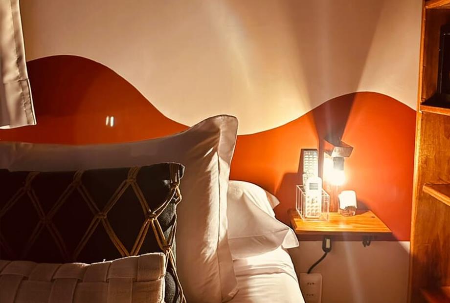 SUÍTE COM 02 AMBIENTES No andar superior da pousada com vista mar. - Ambiente Superior: 01 mezanino para casal com cama super king, ar-cond...