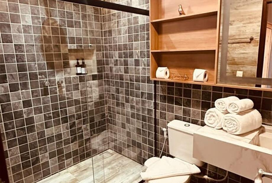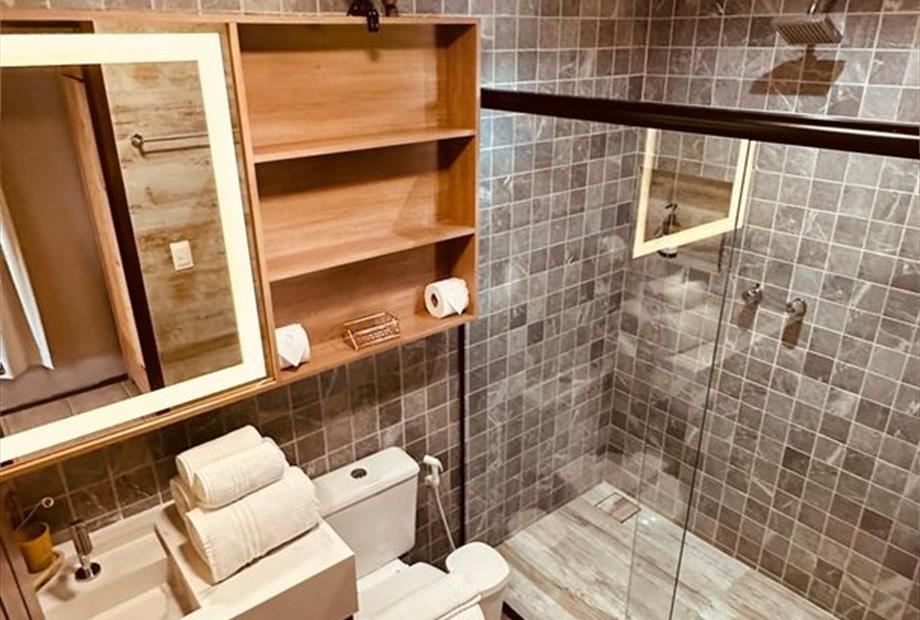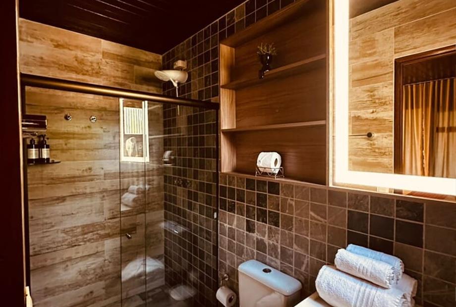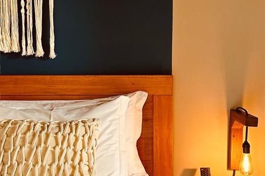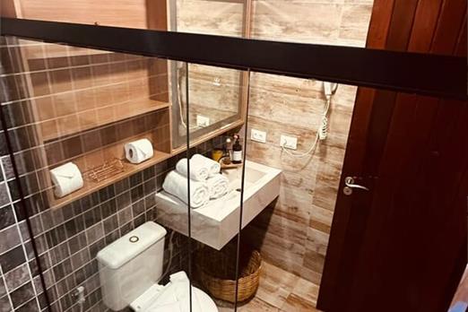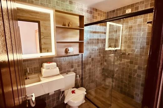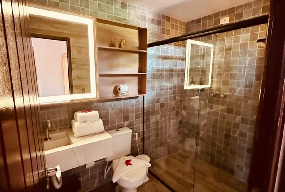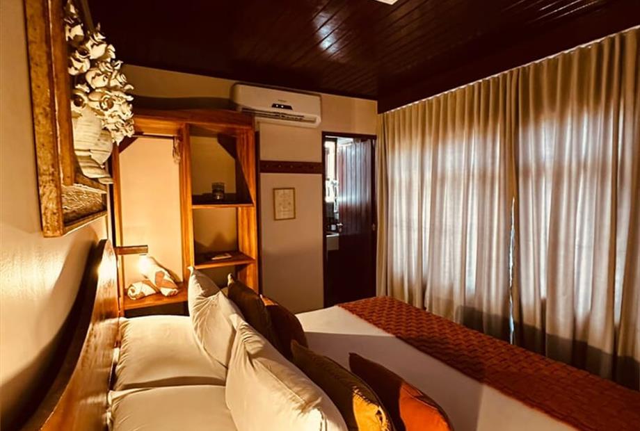 SUÍTE DE 1 AMBIENTE No térreo da pousada (sem vista mar). - Ambiente: um pouco menor do que a suíte térrea luxo, com cama de casal box, ar-...
