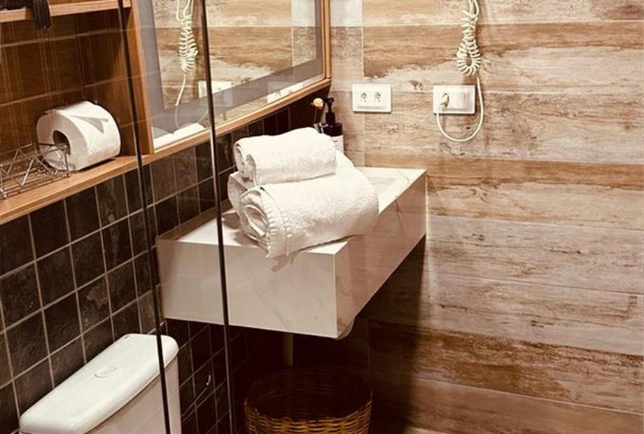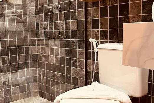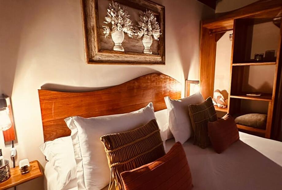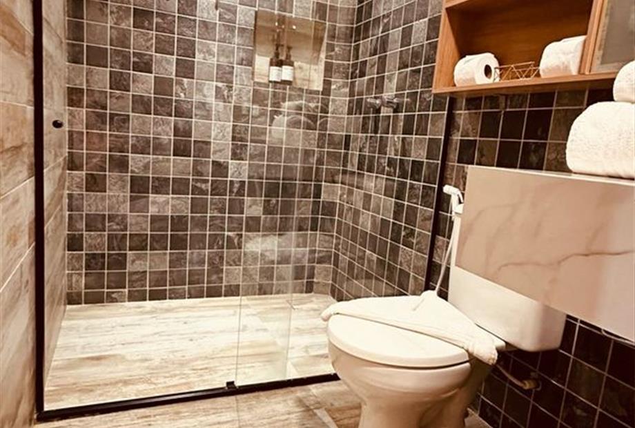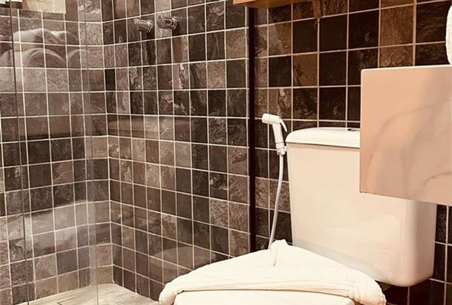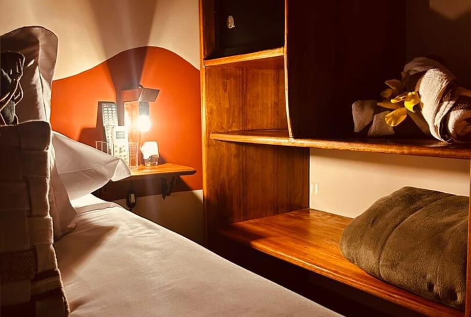 SUÍTE DE 1 AMBIENTE No térreo da pousada (sem vista mar). - Ambiente: um pouco menor do que a suíte térrea luxo, com cama de casal box, ar-...