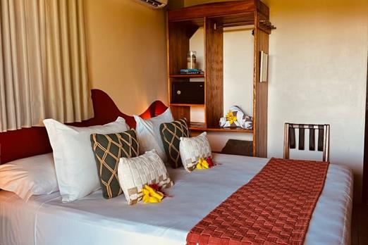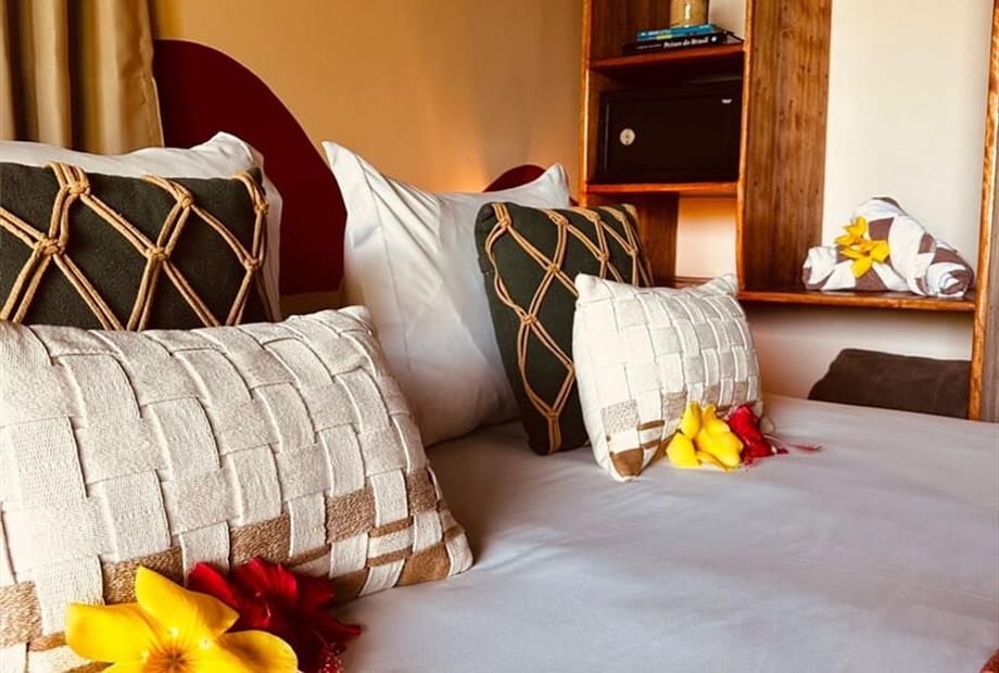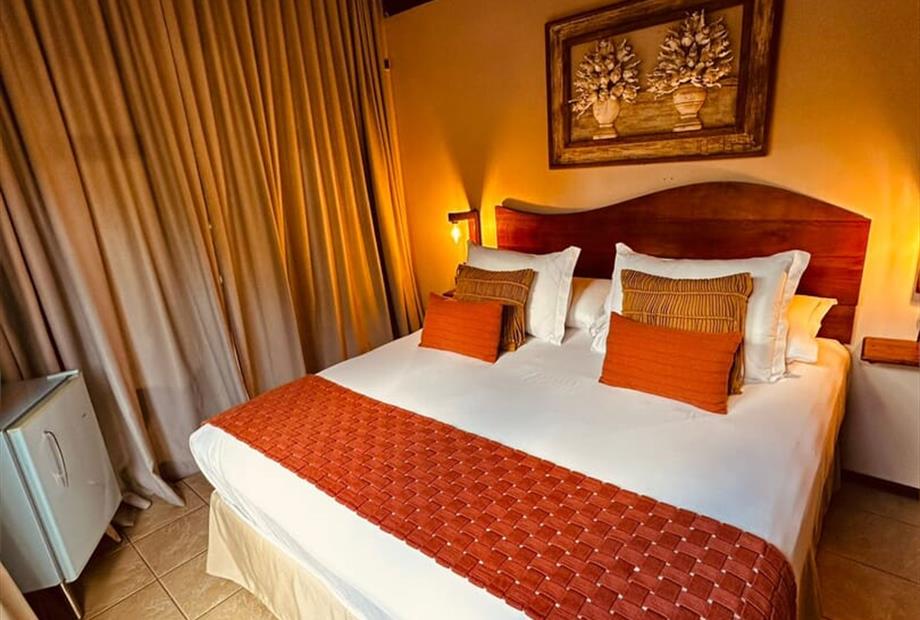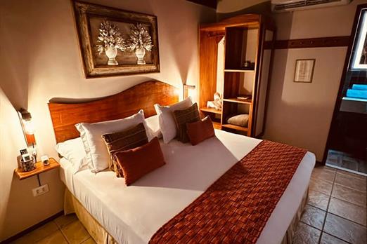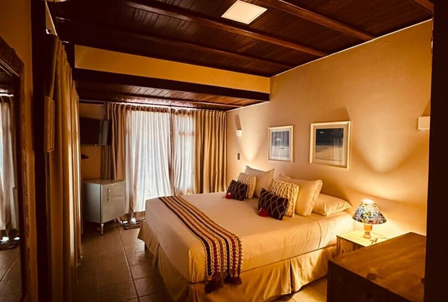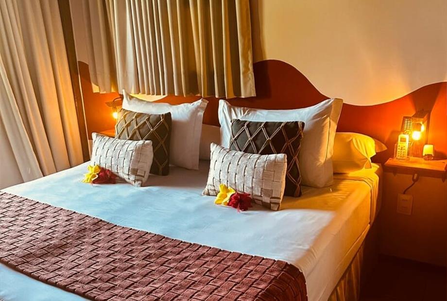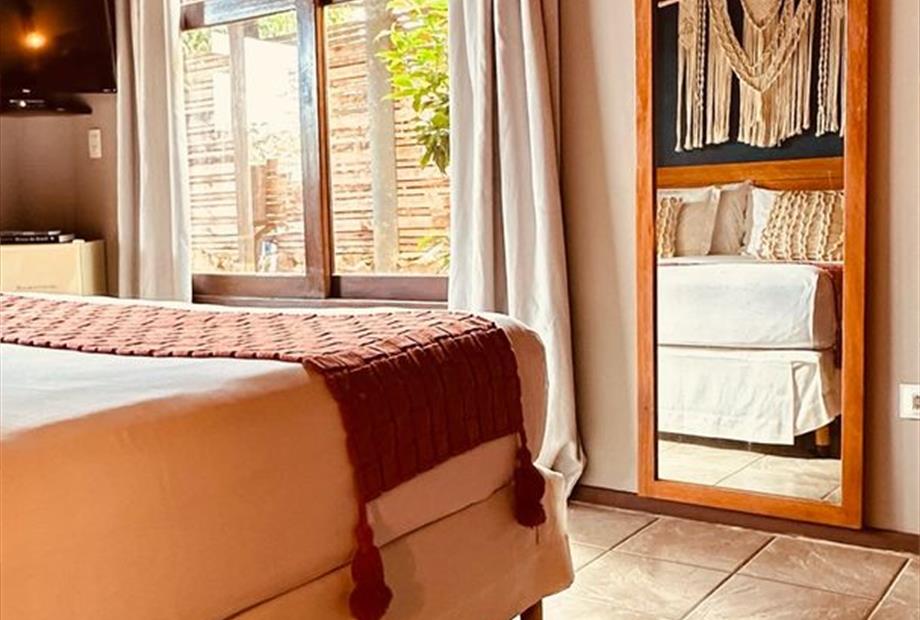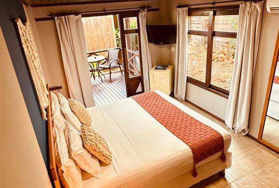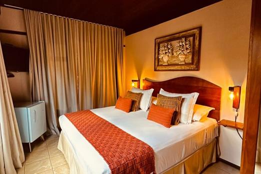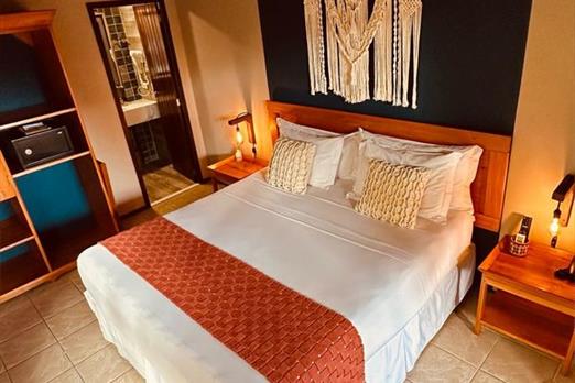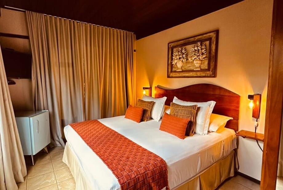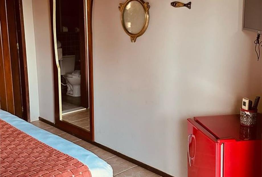 SUÍTE DE 1 AMBIENTE No térreo da pousada (sem vista mar). - Ambiente: cama queen size box, ar-condicionado split, TV 32', frigobar, cofre,...