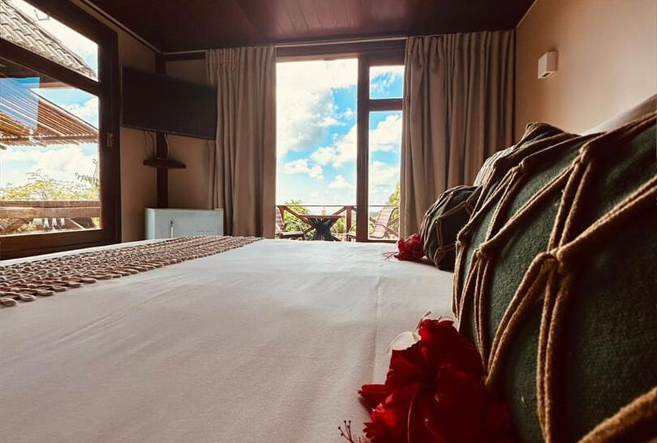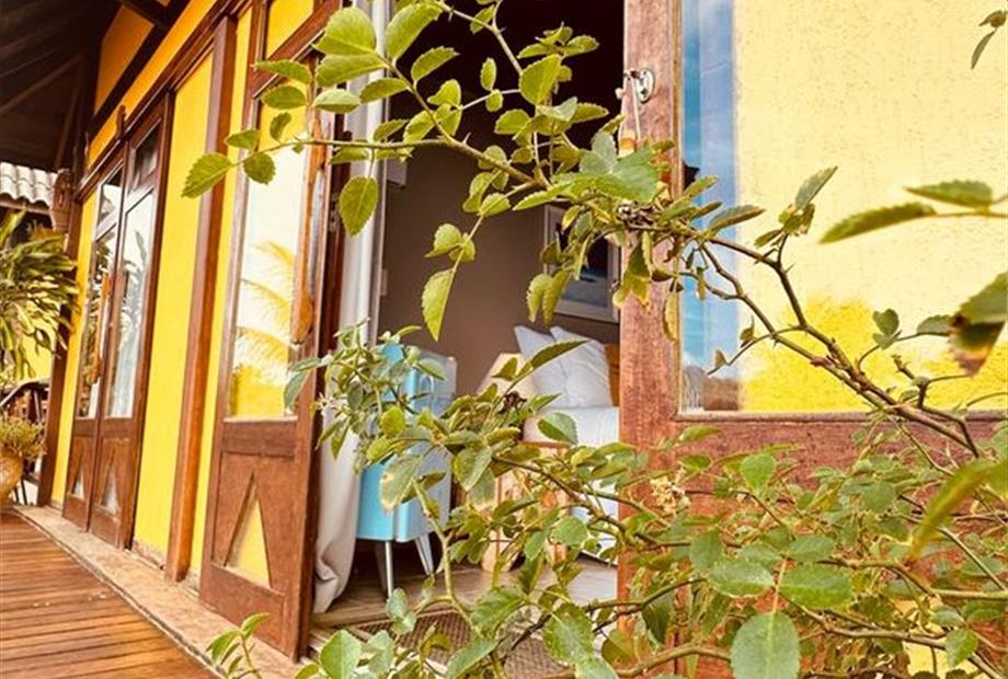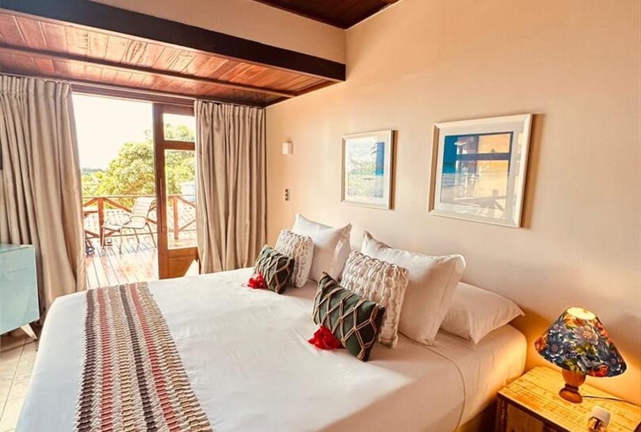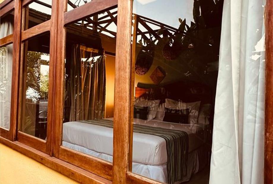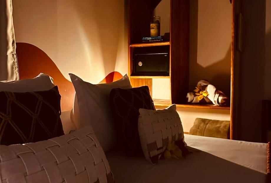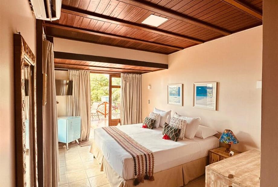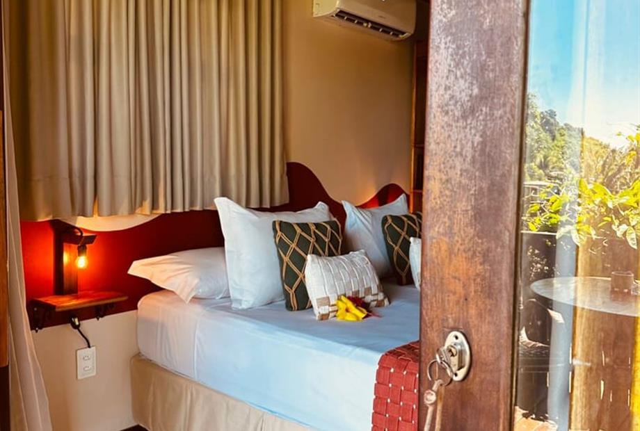 SUÍTE DE 1 AMBIENTE No andar superior da pousada com vista mar. - Ambiente: cama king size box, ar-condicionado split, TV 32', frigobar, co...
