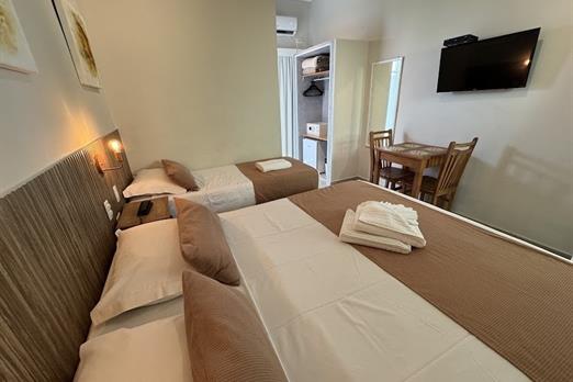 Localizado no andar térreo, equipado com ar condicionado split, frigobar, tv a cabo, cofre digital, internet wifi e secador de cabelo.