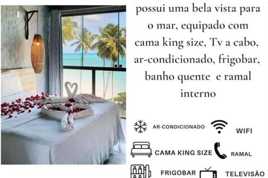 Cada Master mede 30 m2, banheira com hidromassagem, vista ampla para o mar, dispondo de cama king size , smart TV 50", enxoval 200 fios, int...