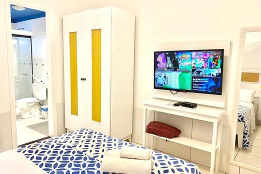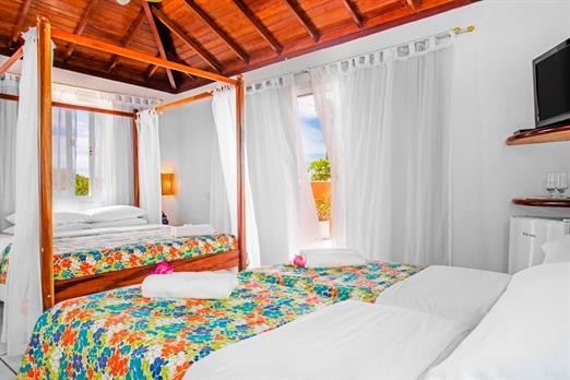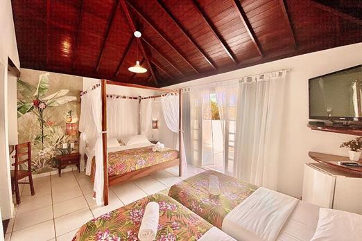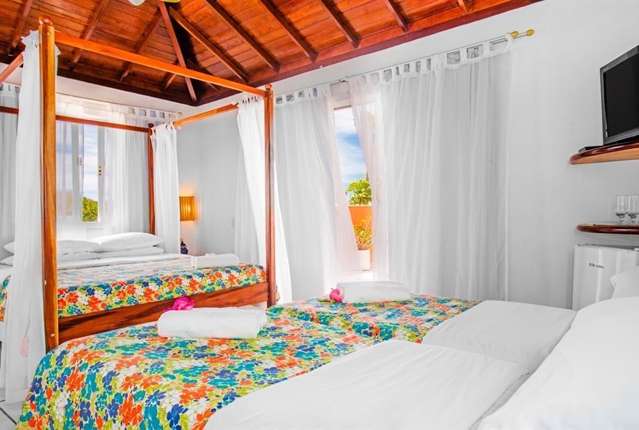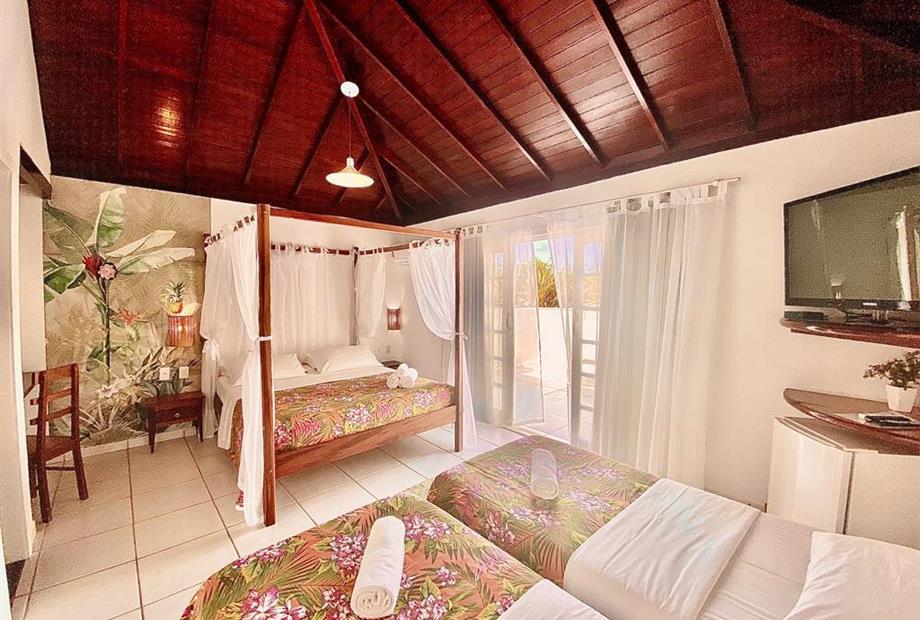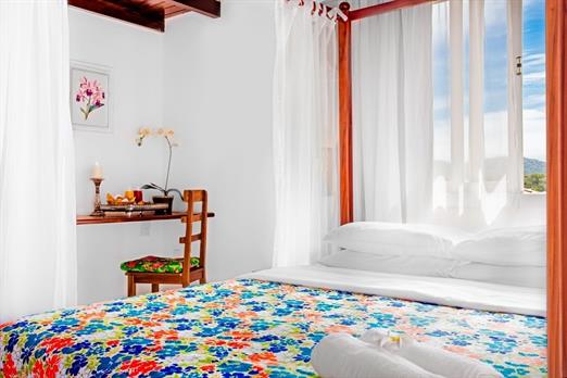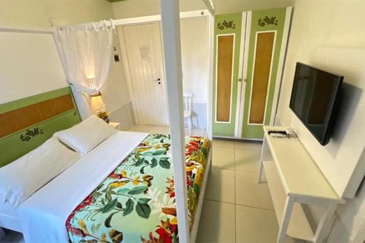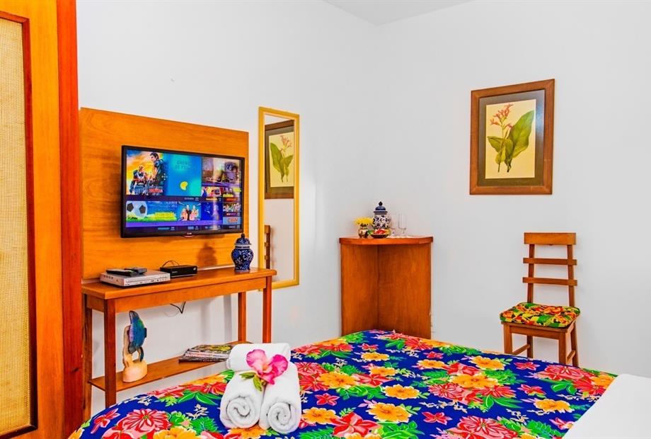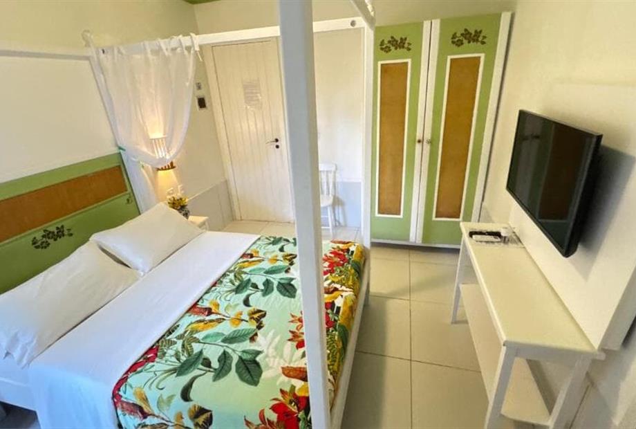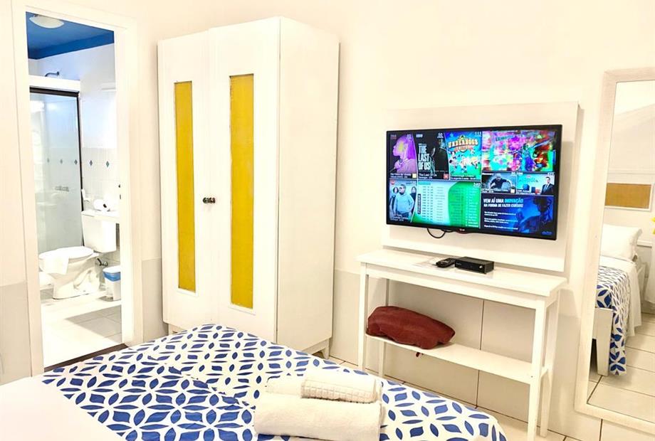 Suíte equipada com SMART TV LCD “32”, frigobar, ar condicionado, banheiro com amenities e secador de cabelos, cofre , uma cama de casal e...