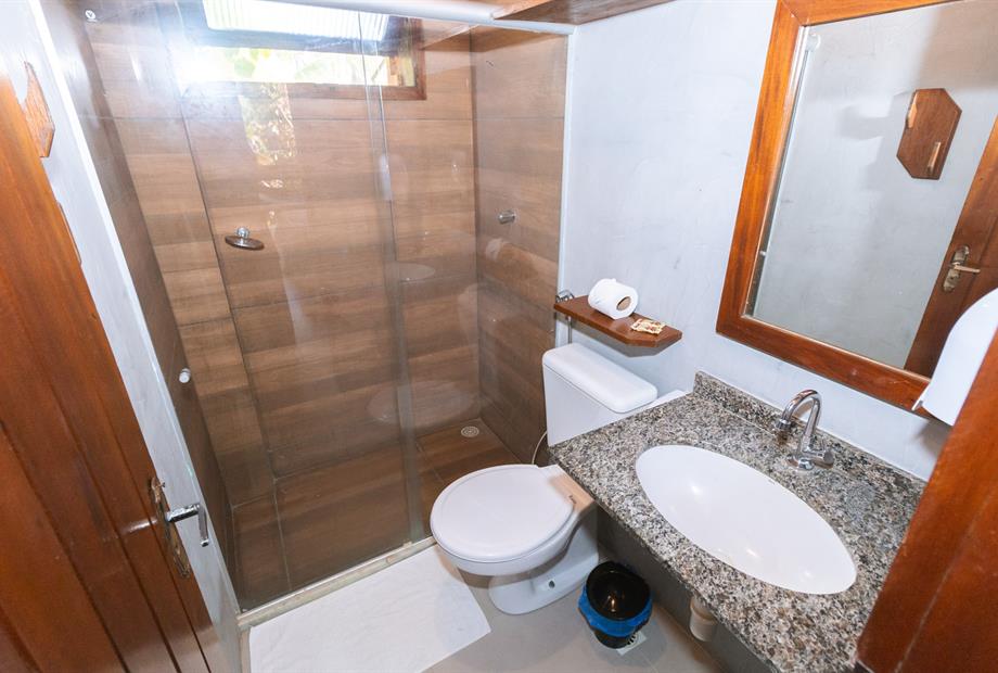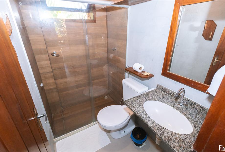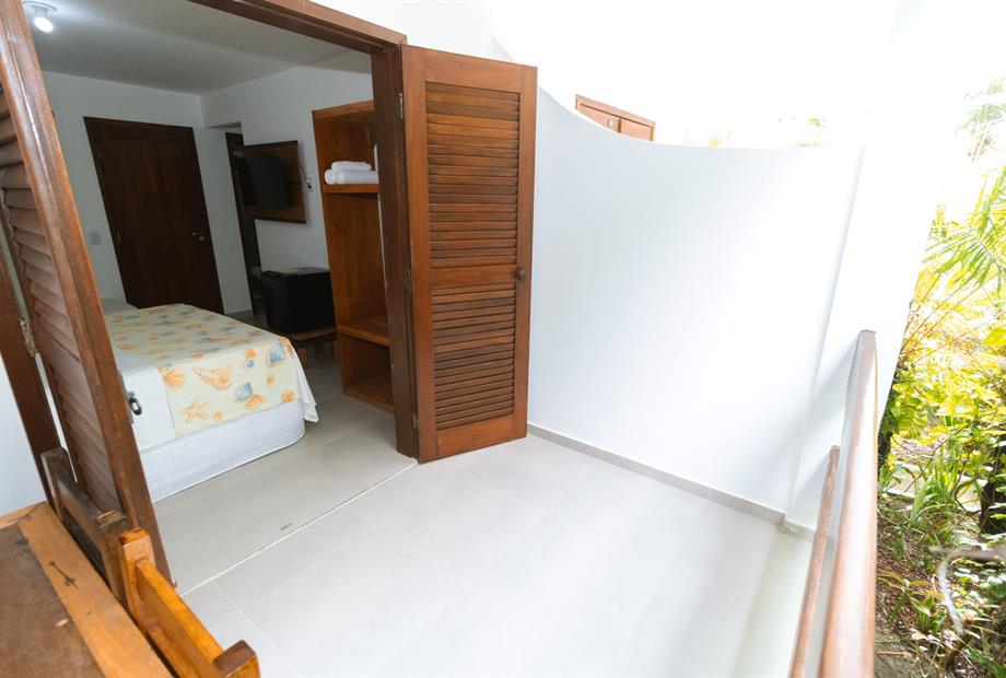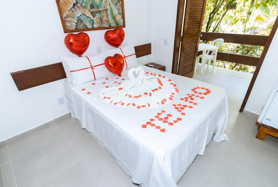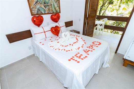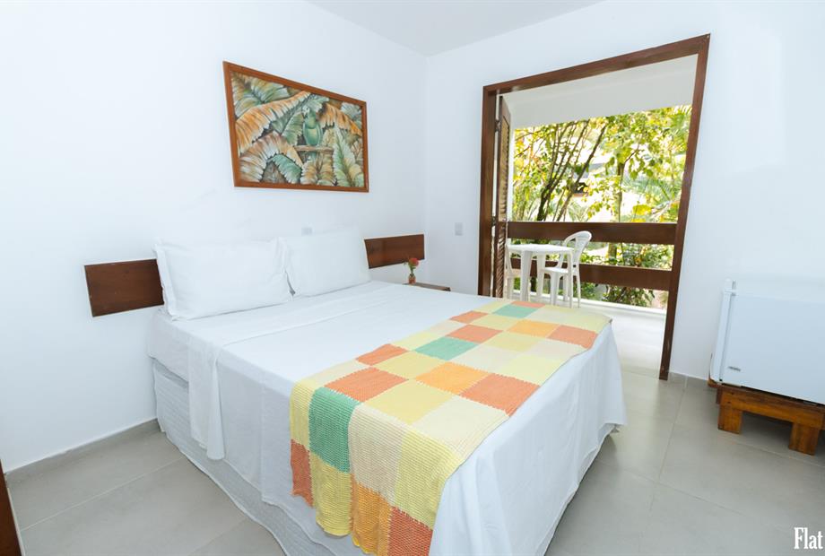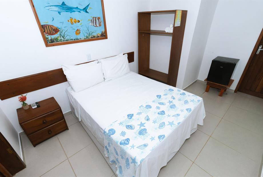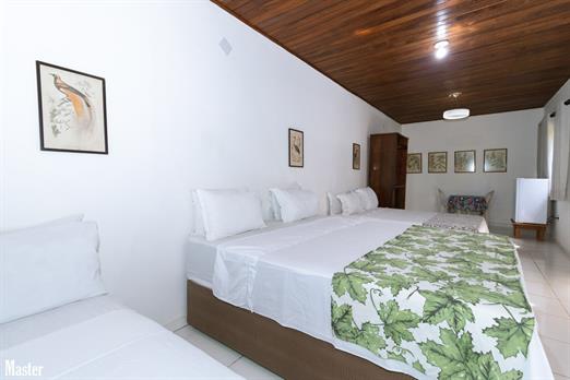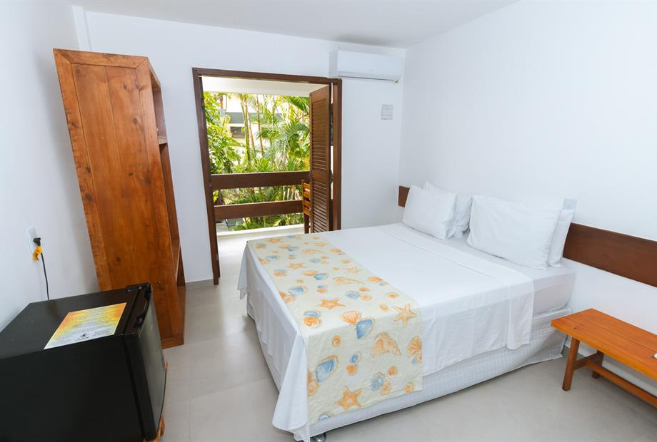 Acomodação para casal com 01 cama box. Equipada com ar condicionado, frigobar, wi-fi, TV a cabo, roupeiro, varanda, vista para o jardim. Á 2...