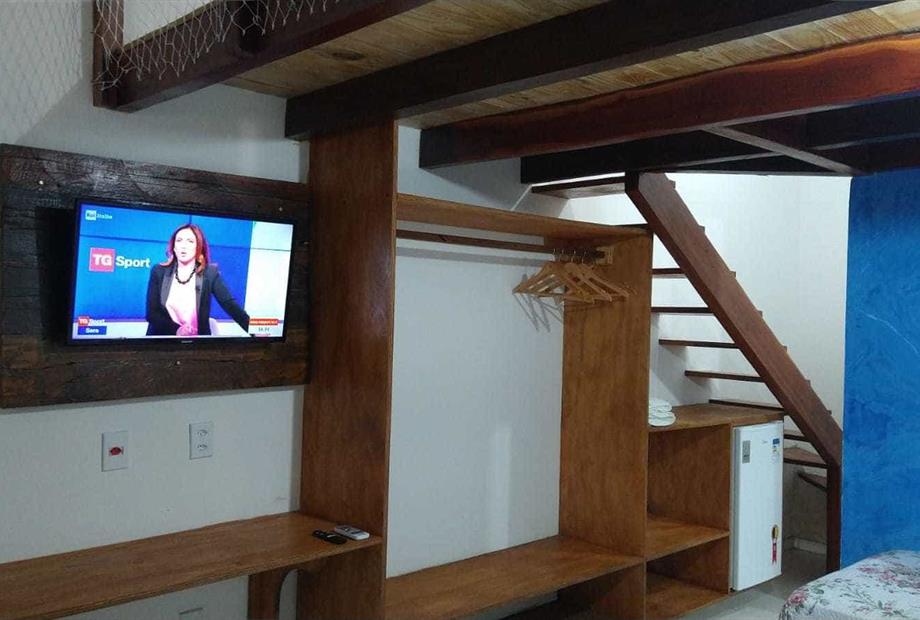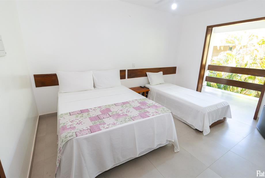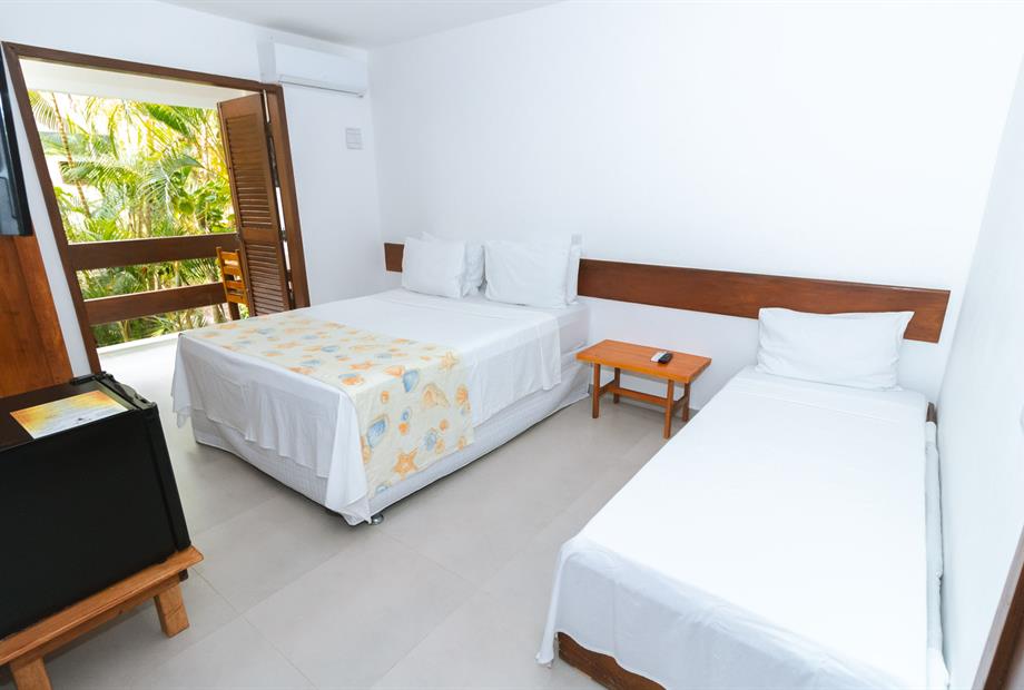 Acomodação com 01 cama casal e 01 bi cama solteiro. Equipada com ar condicionado, frigobar, wi-fi, TV a cabo, roupeiro, varanda, vista para...