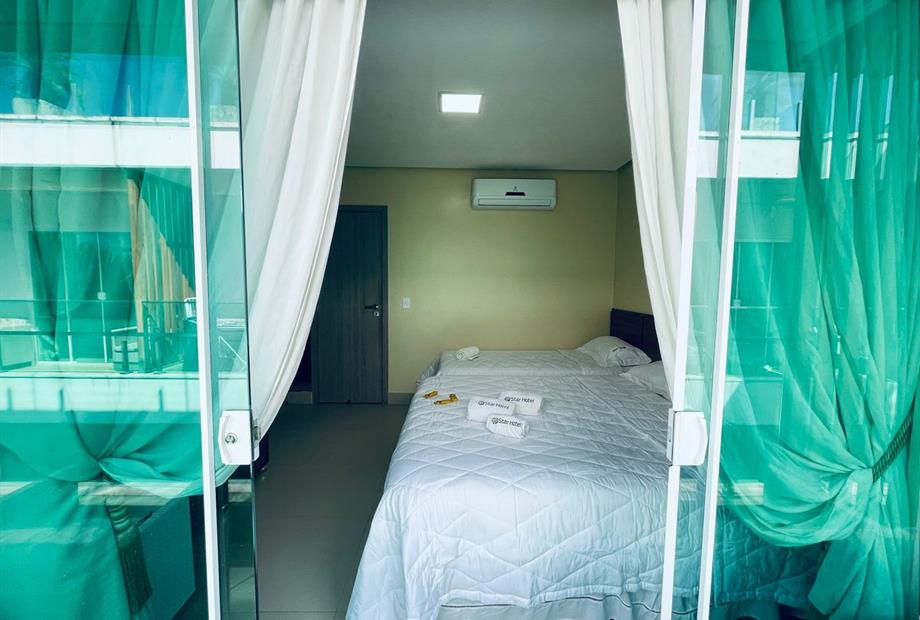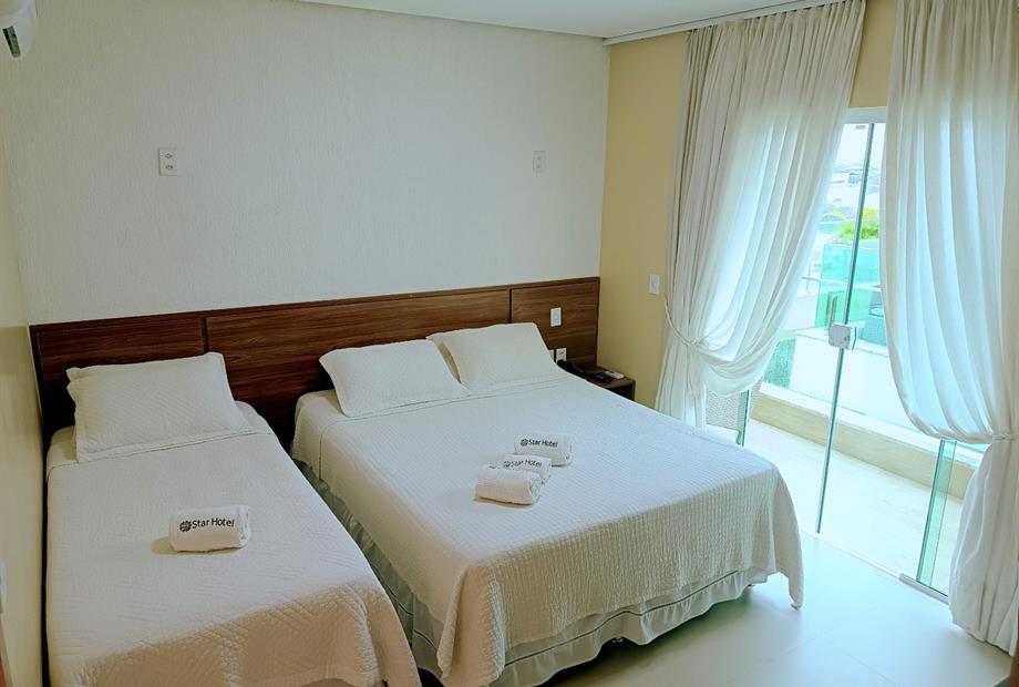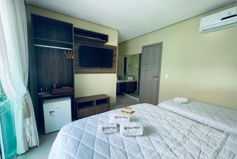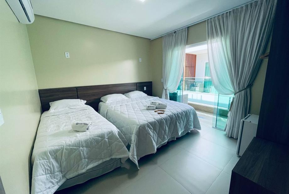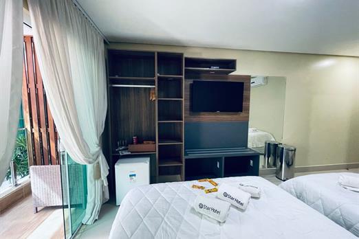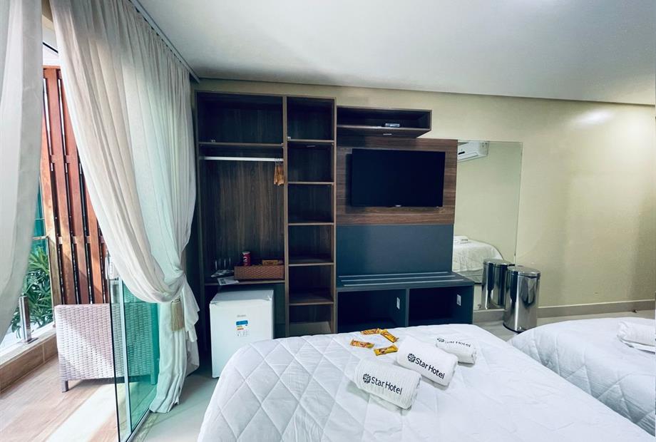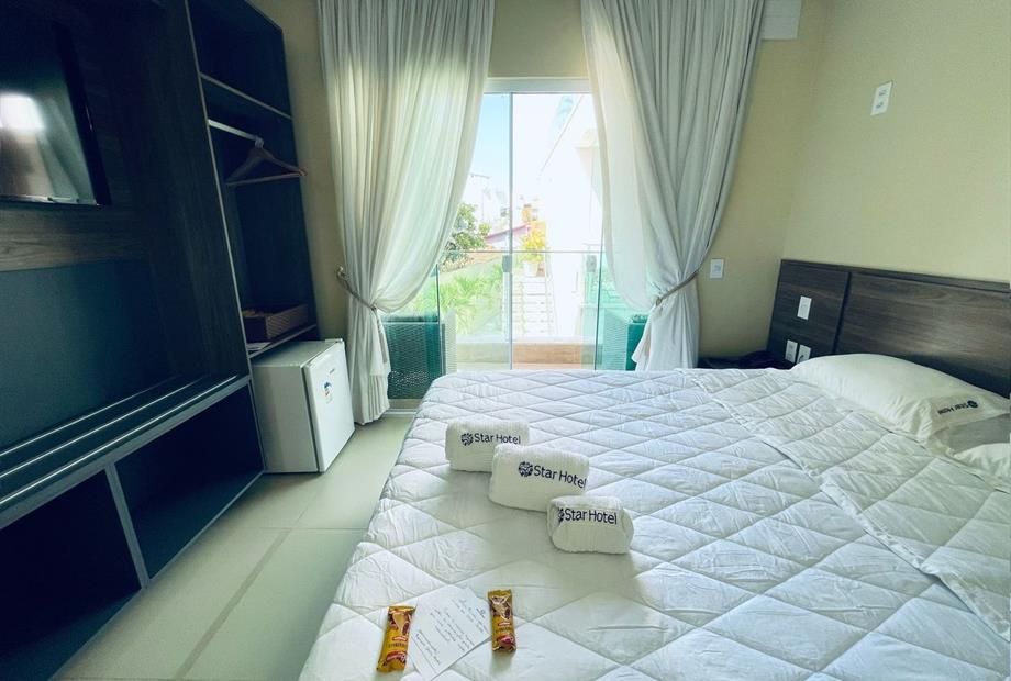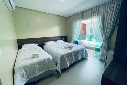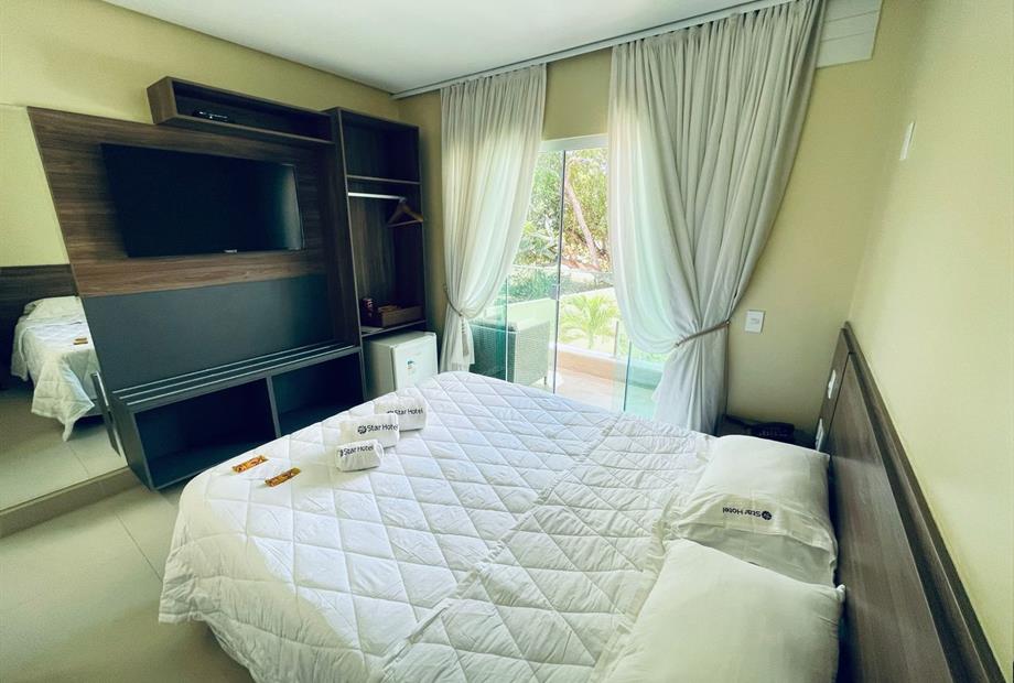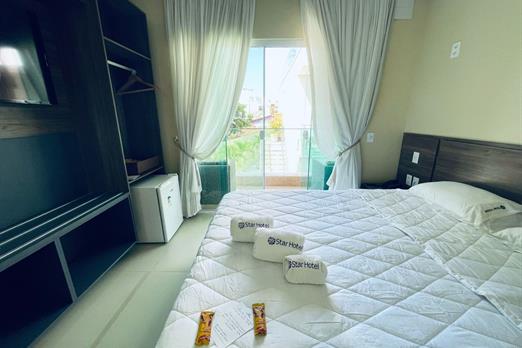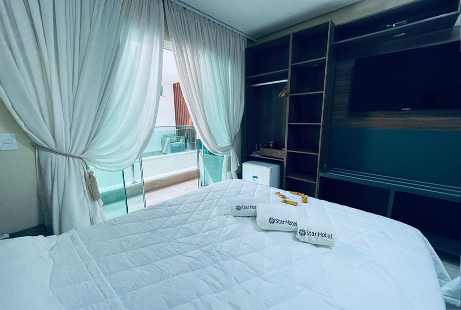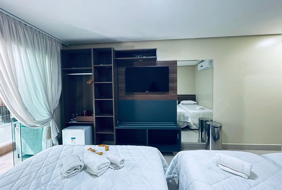 Quarto Deluxe oferece varanda, ar-condicionado, TV, Frigobar.