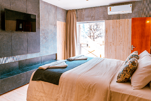 Apartamento privativo, sem varanda. Comodidades do quarto: • Ofurô • Frigobar • TV • Telefone • Ar-condicionado • Banheiro privativo • Se...