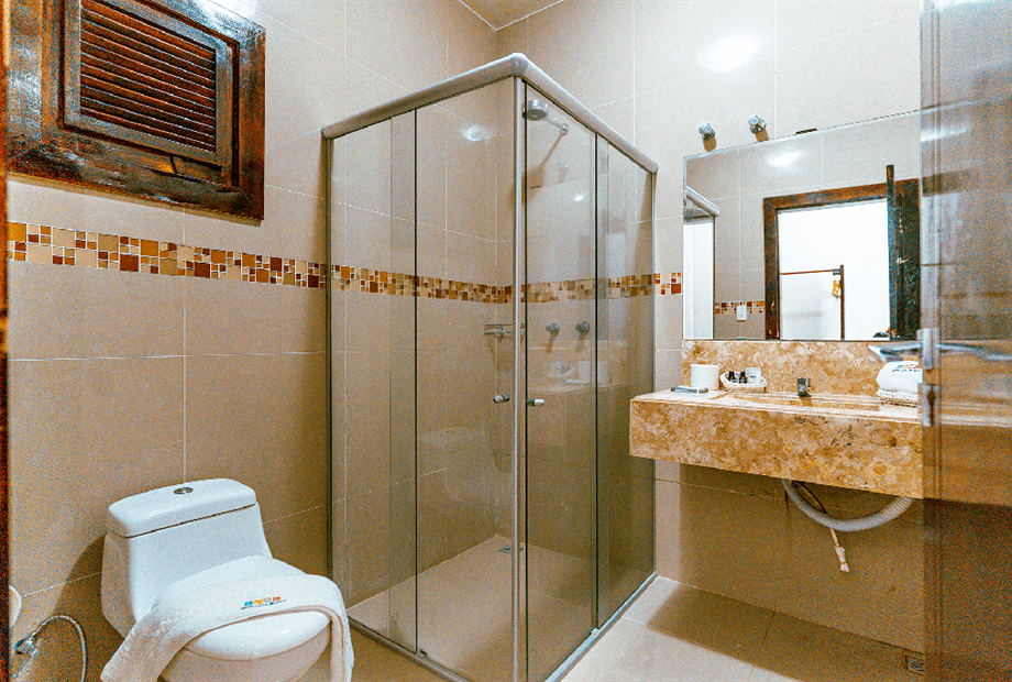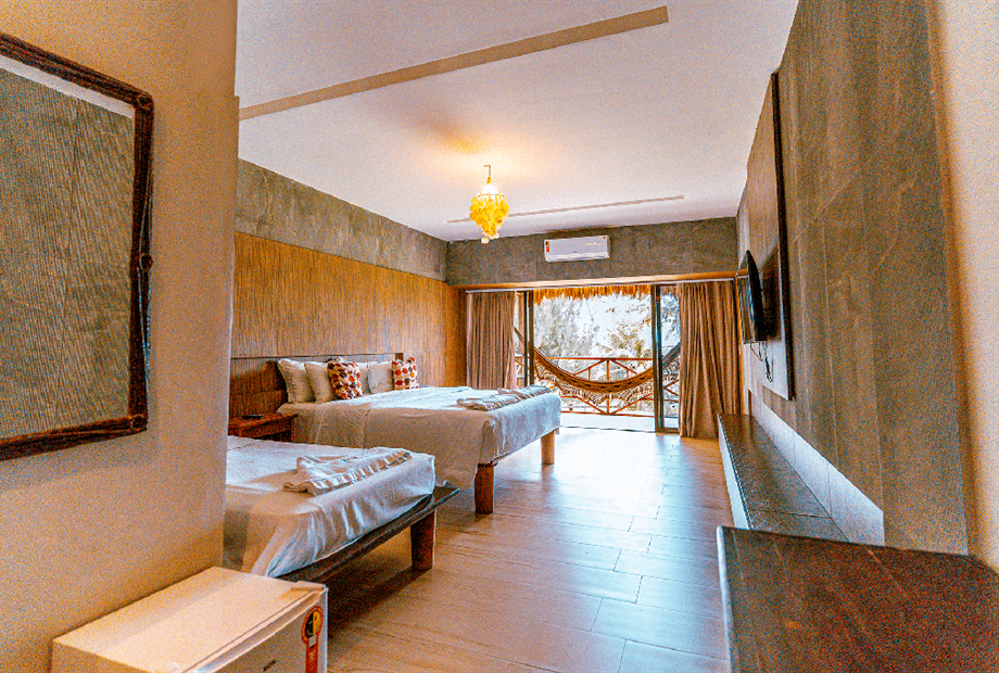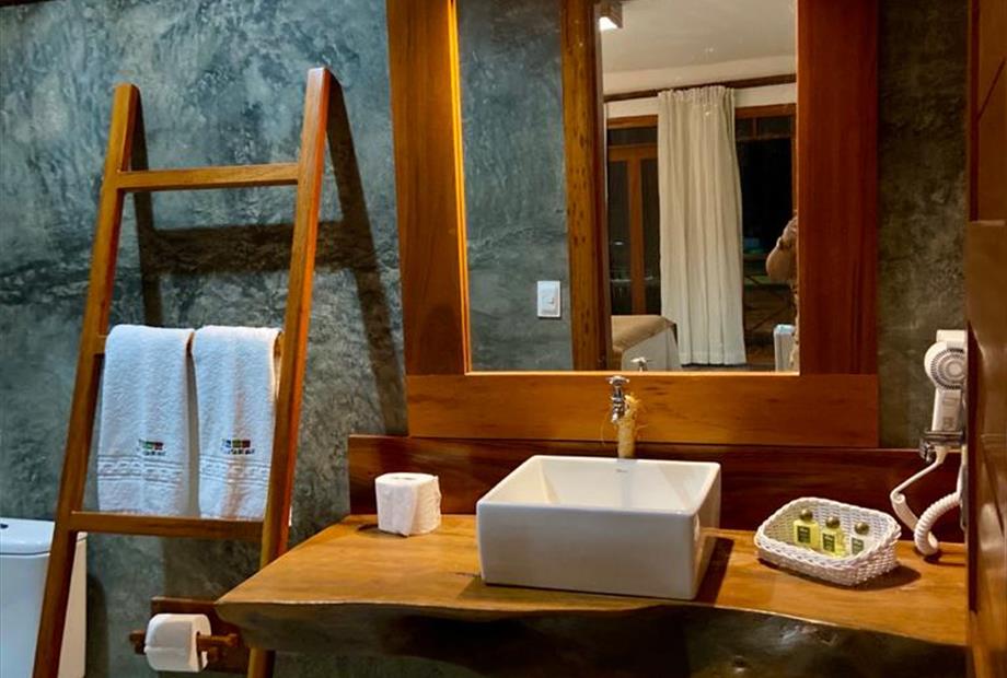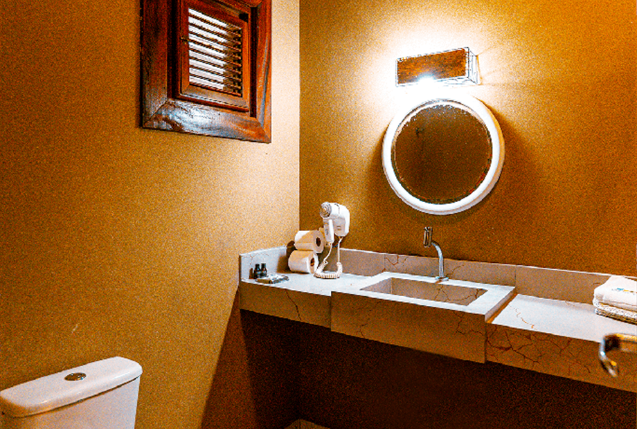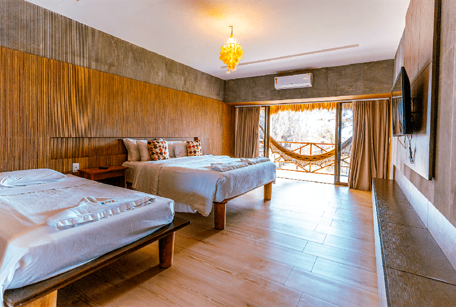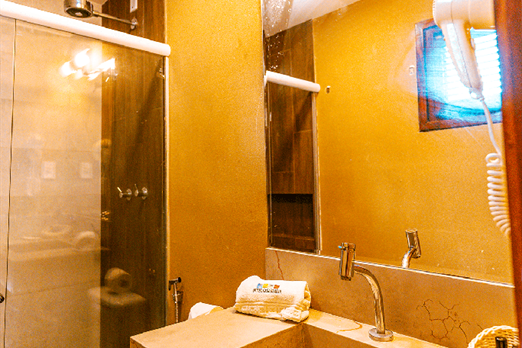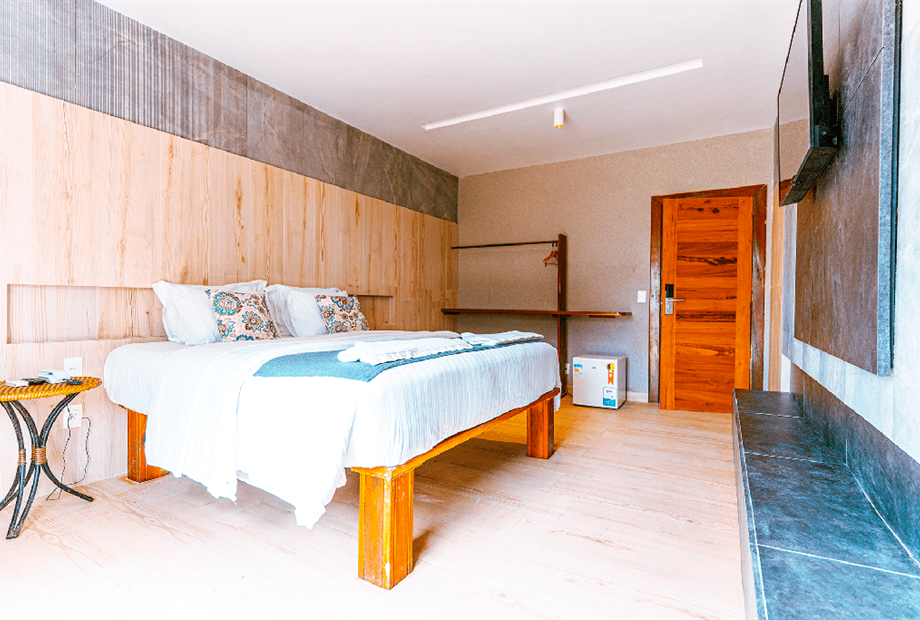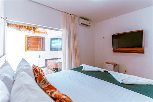 Comodidades do quarto: • Frigobar • TV • Telefone • Ar-condicionado • Banheiro privativo • Secador de cabelo • Cama King • Varanda