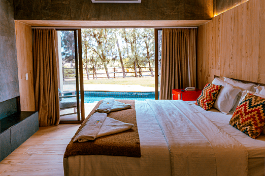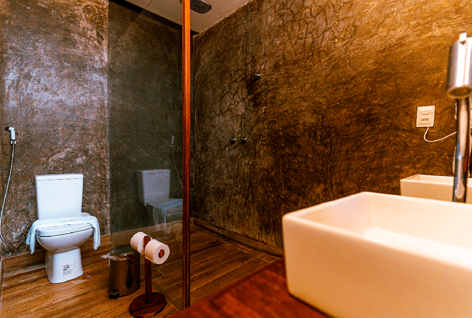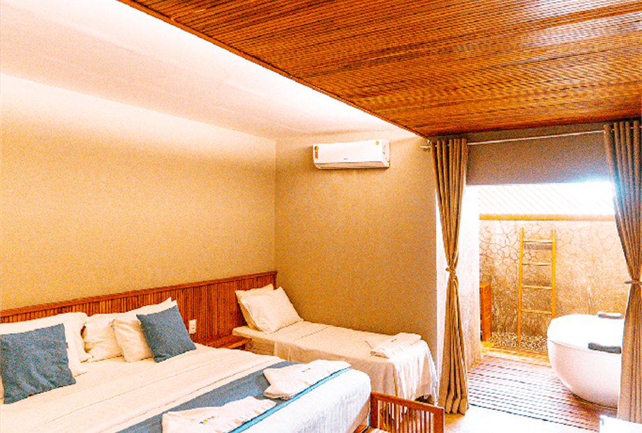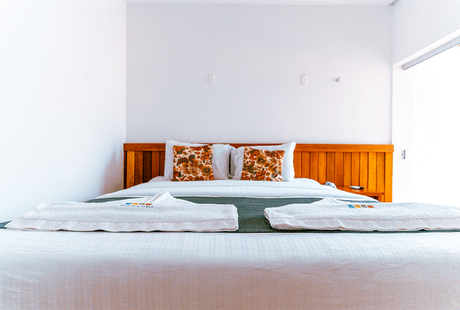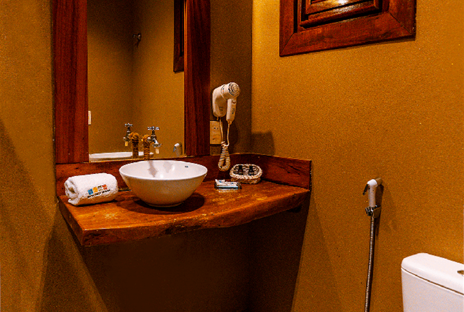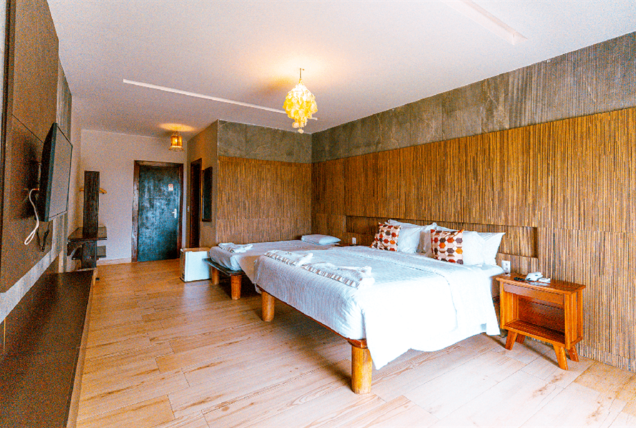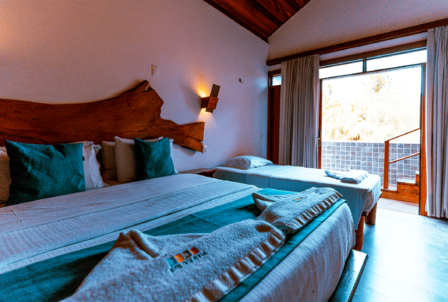 Comodidades do quarto: • Frigobar • TV • Telefone • Ar-condicionado • Banheiro privativo • Secador de cabelo • Cama King • Varanda