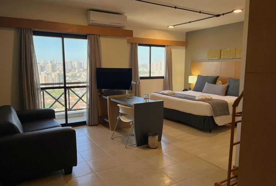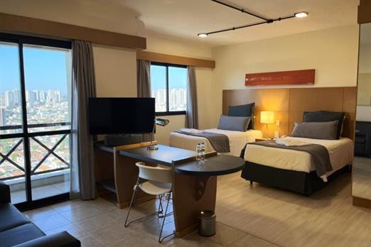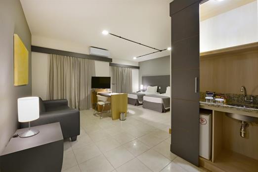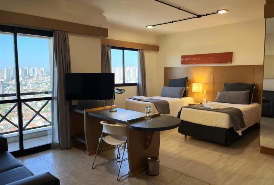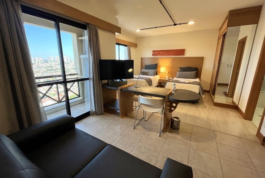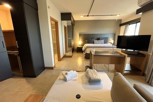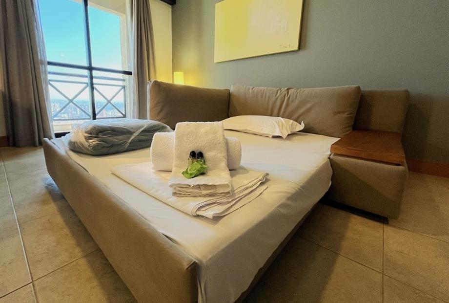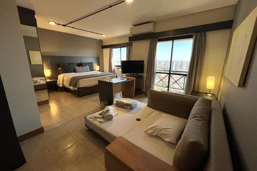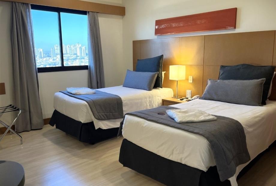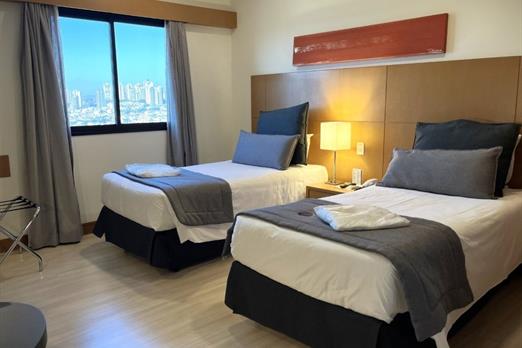 Suíte acomoda até dois adultos, opção de conjugar com apartamento Suíte Super Luxo Casal com Banheira. - Suítes no 22° andar; - Duas camas...