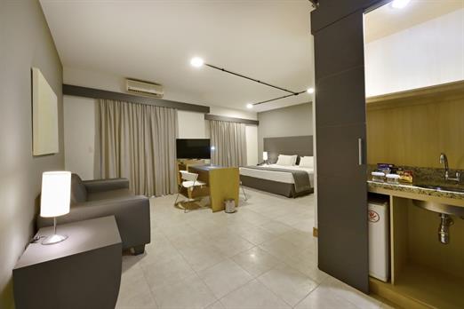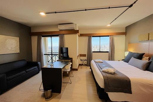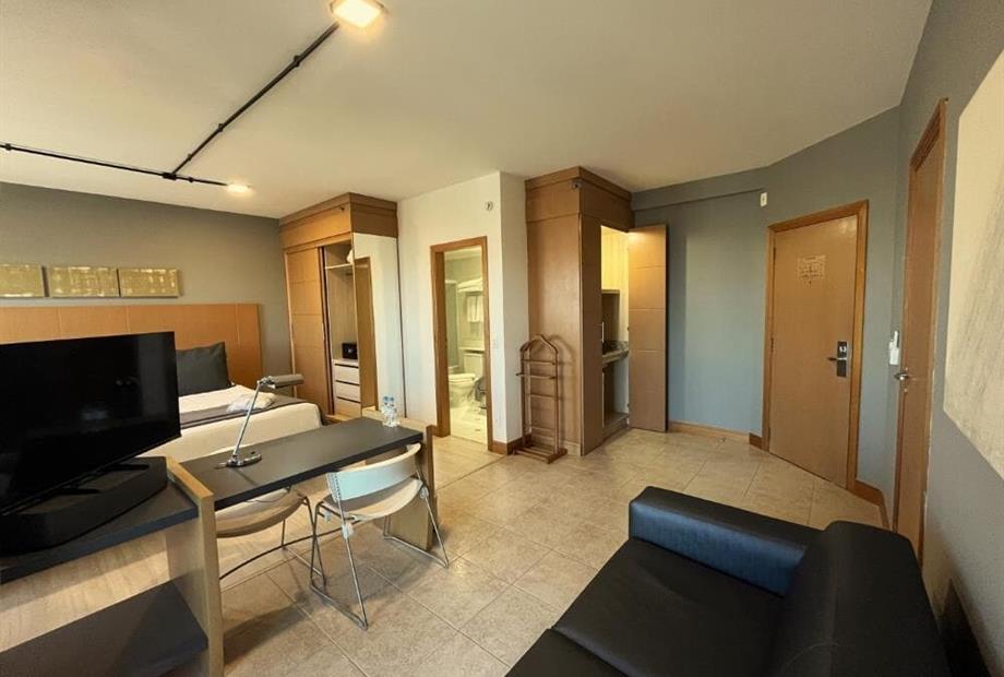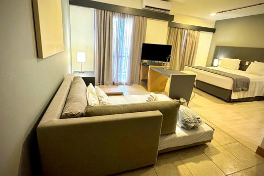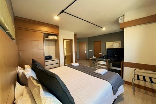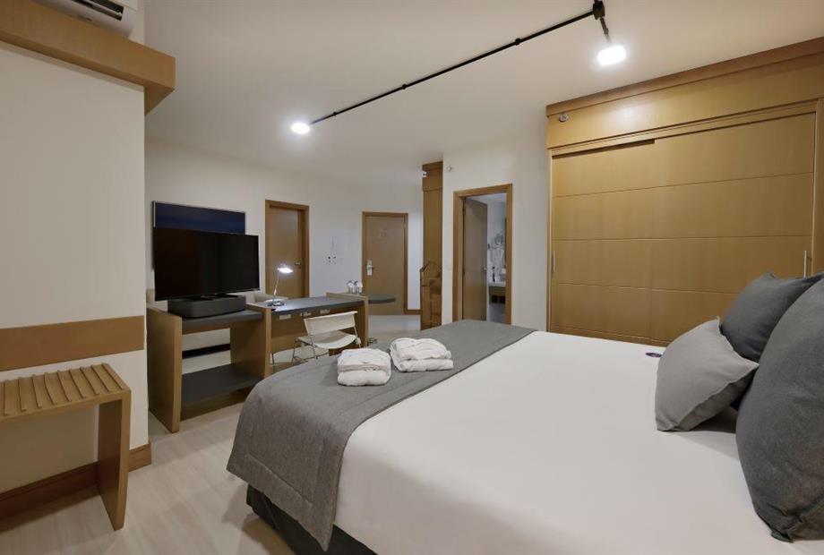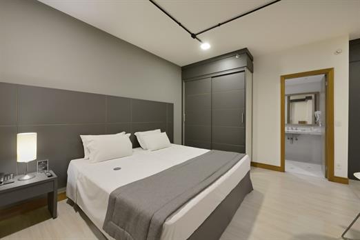 Suíte acomoda até dois adultos, podendo incluir uma criança de até 3 anos gratuitamente. - Suítes nos andares mais altos; - Cama king size...