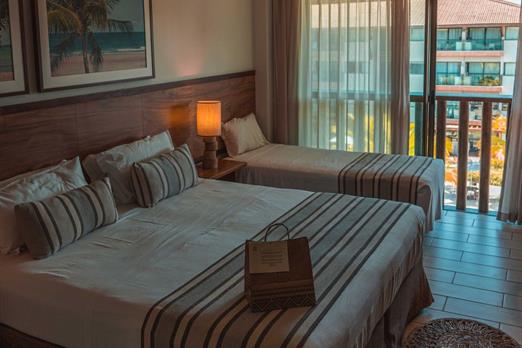 28m², Vista Piscina e Lateral Mar, com uma cama de casal king size e duas camas de solteiro (acomoda até 4 pessoas ), free Wi-Fi, espelho d...