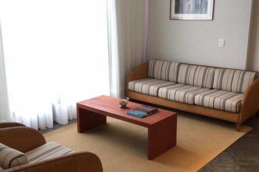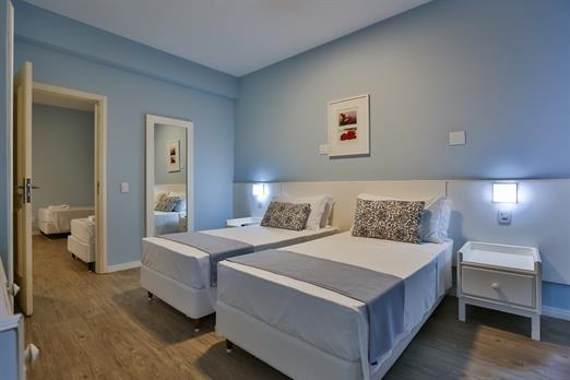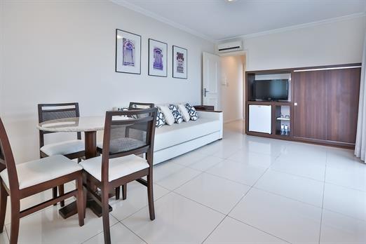 Suíte localizada no Bloco Norte com vista jardim, com área total de 60m², divididos entre sala de estar e 2 quartos com banheiros independen...