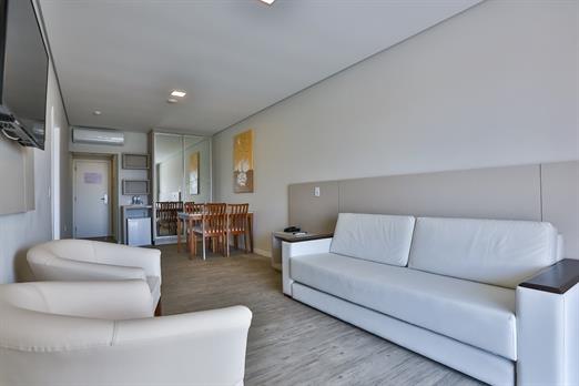 Suíte localizada no Bloco Central, com fácil acesso à recepção e Boulevard (restaurantes, lojas e academia), com área total de 31 m², dividi...