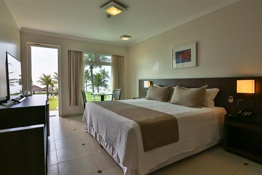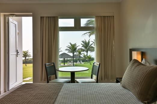 Suíte localizada no Bloco Garden em andar térreo ou primeiro andar. Possui sacada lateral no quarto de casal com vista para o mar e área tot...