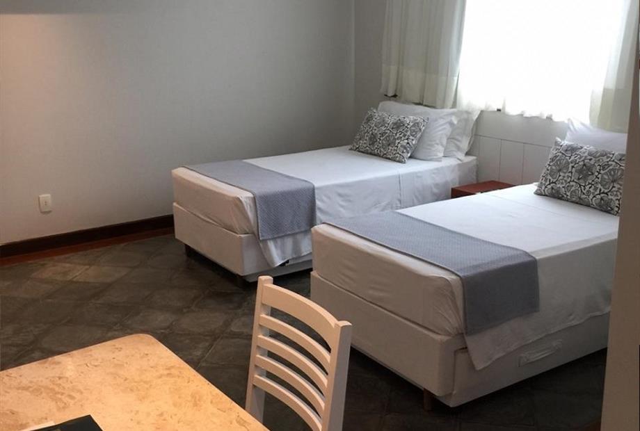 Apartamento localizado no Bloco Norte com vista jardim, com área total de 26m², divididos entre quarto e banheiro. Equipado com TV de plasma...