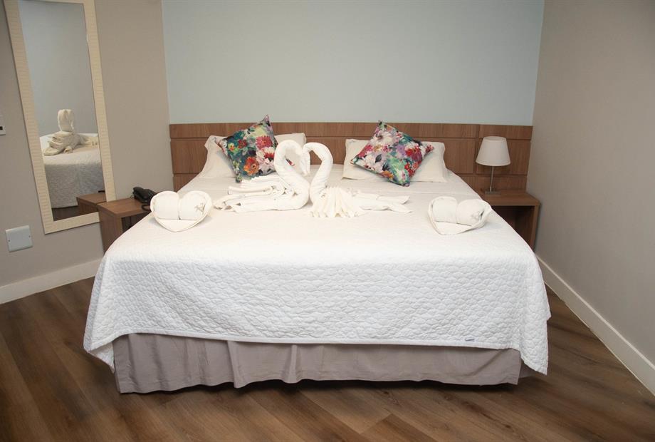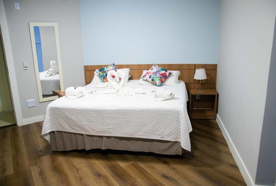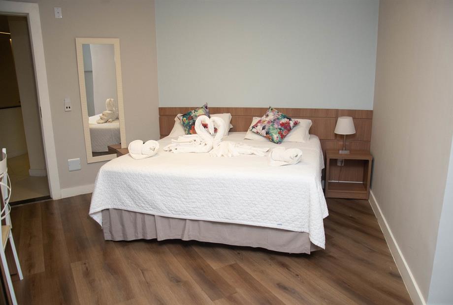 Apartamento com uma cama de casal e com possibilidade de duas camas de solteiro, TV de LED 32", Wi-Fi, frigobar, ar condicionado e banheiro... (ver mais)