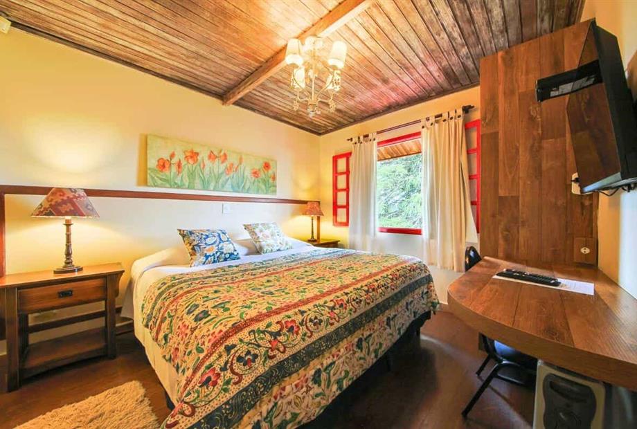 Este quarto possui vista para o jardim e uma cama queen. Conta também com Smart TV, wi-fi, aquecedor de ambiente, banheiro privativo, banho...