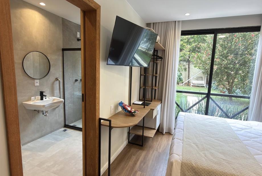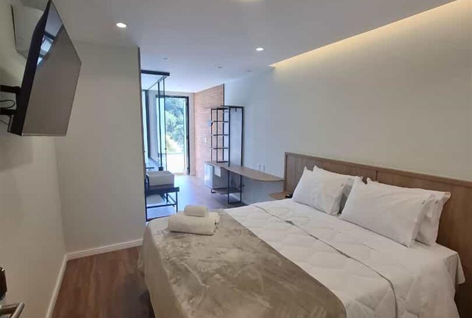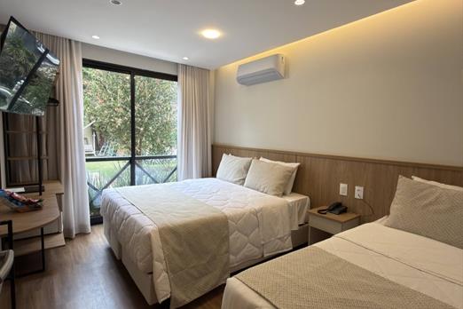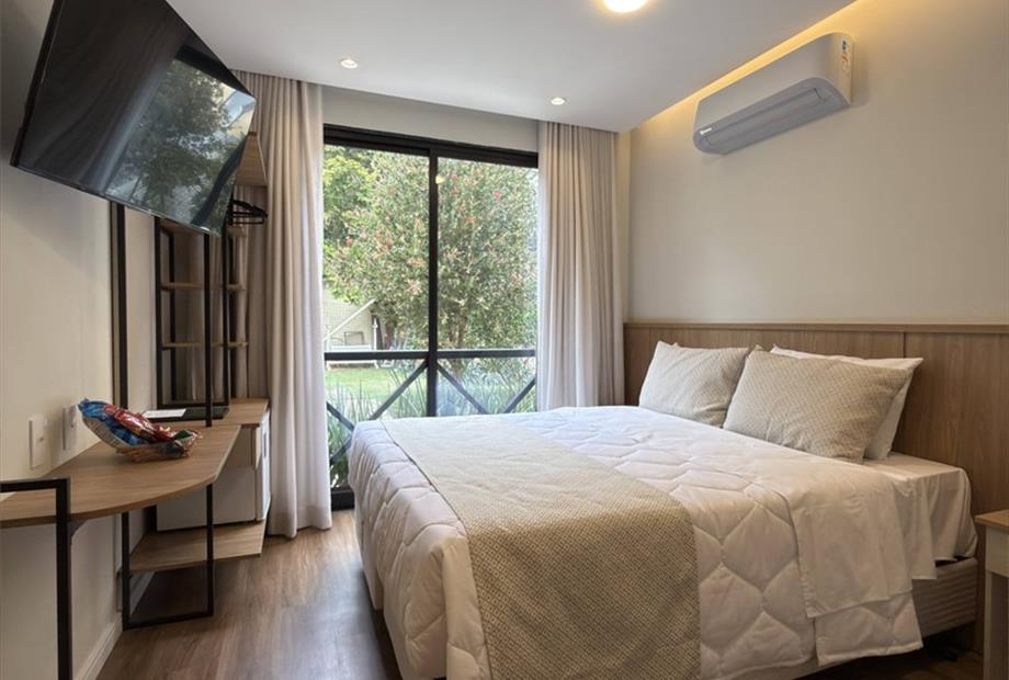 A Suíte Master do Hotel Serra Everest foi planejada para oferecer momentos únicos de descanso e bem-estar. Ampla, elegante e climatizada, co...