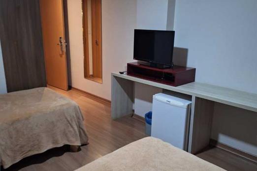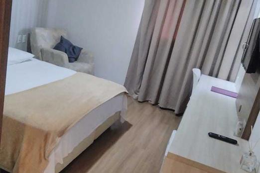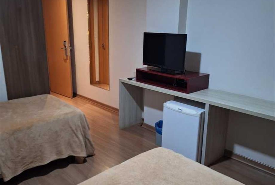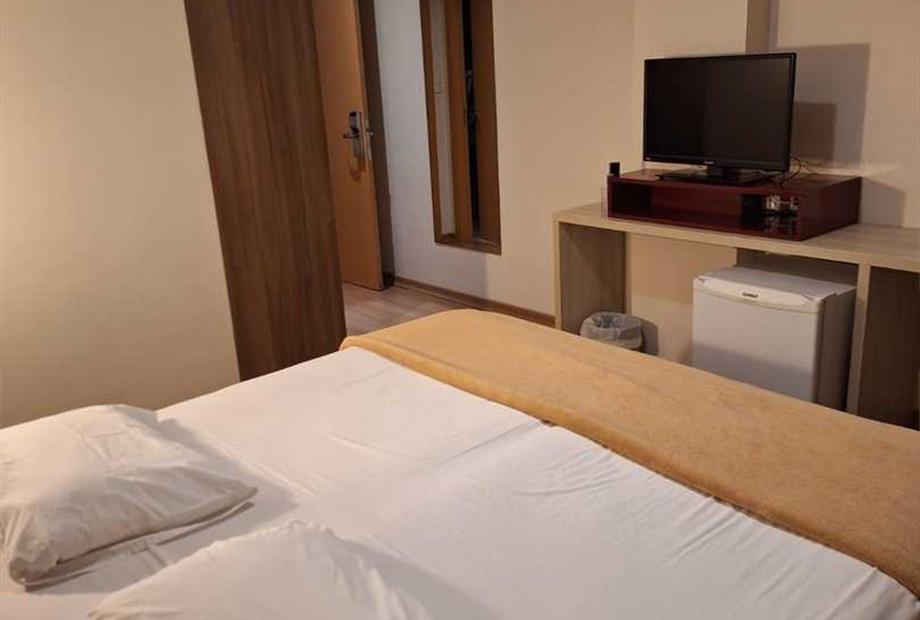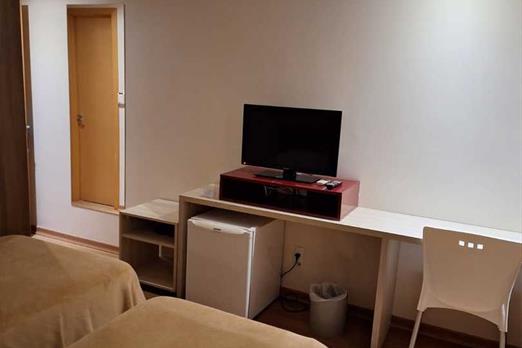 TV de LCD 43” com recepção de canais abertos e a cabo Frigobar Ar condicionado tipo Split Cofre eletrônico Sistema de aquecimento de água ce...