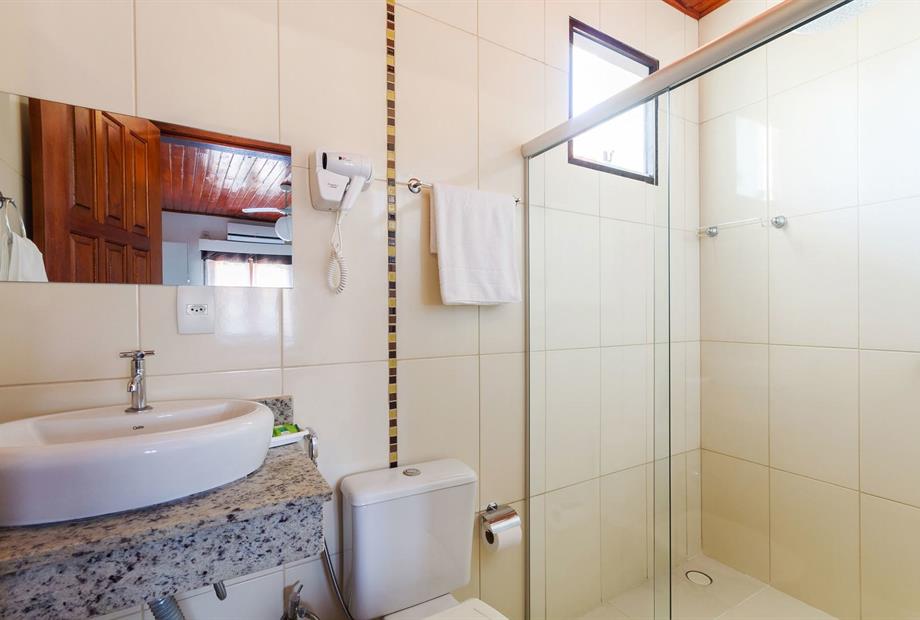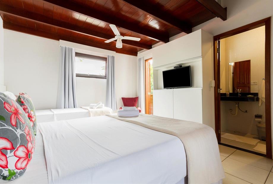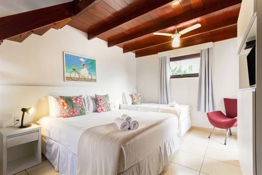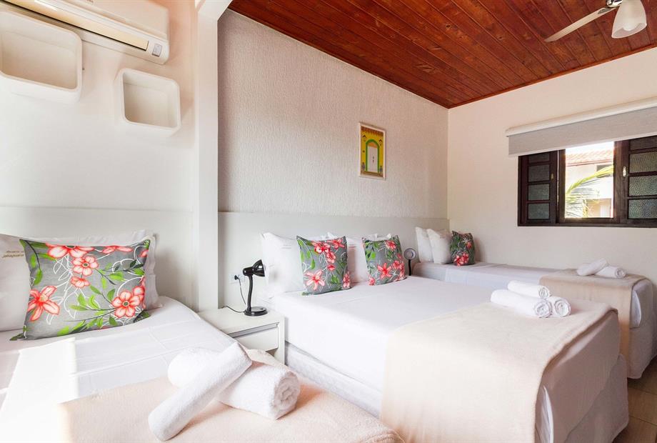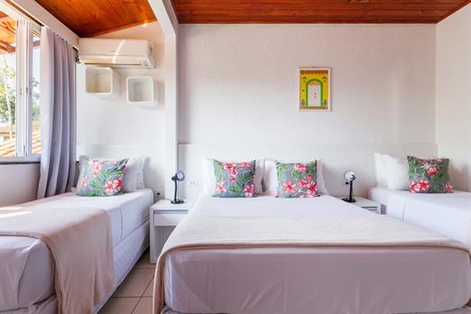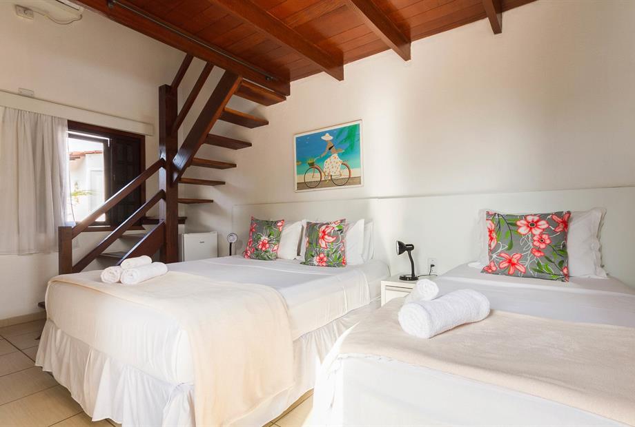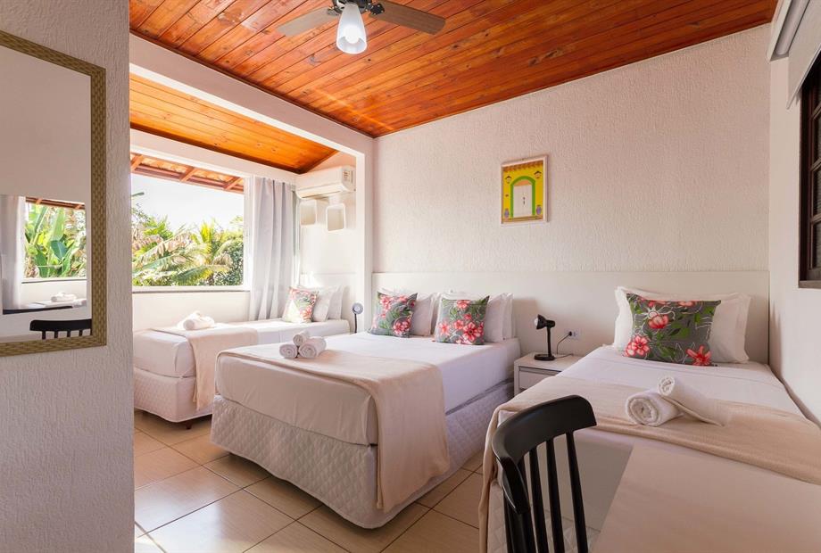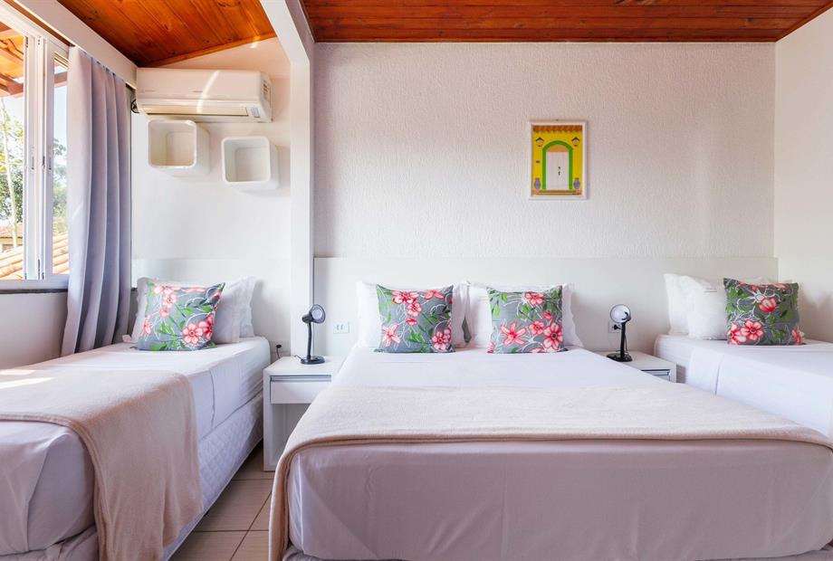Suíte funcional, ideal para quem busca conforto e praticidade. Equipada com 1 cama de solteiro, 2 camas de casal, ar-condicionado, frigobar...