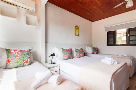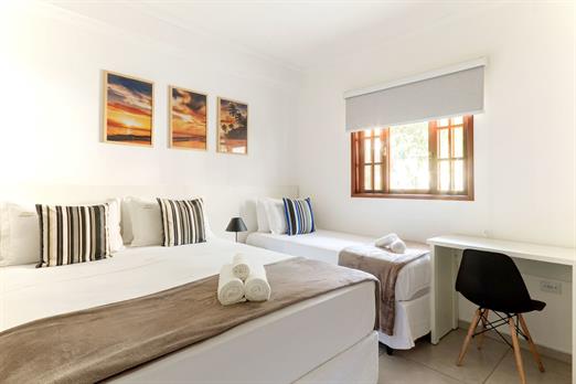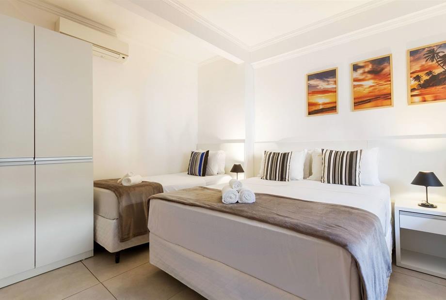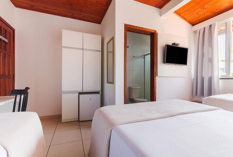 Suíte funcional, ideal para quem busca conforto e praticidade. Equipada com 2 camas de solteiro e 1 cama de casal, ar-condicionado, frigobar...