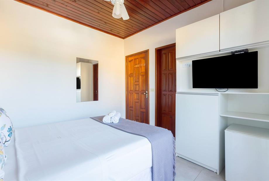 Quarto aconchegante, equipado com ventilador de teto, ar-condicionado, TV de tela plana com canais abertos e frigobar de uso livre. Pode ser...