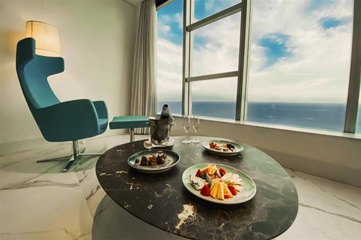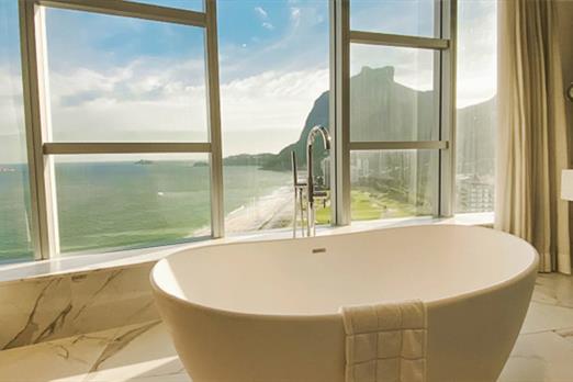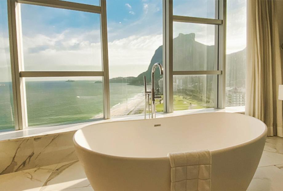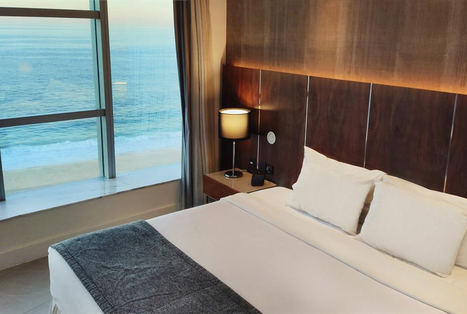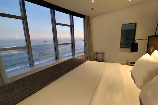 Com 96m², possui vista de frente para o mar com uma incrível banheira de imersão. São 3 ambientes e incrível decoração. No quarto, há cama k...