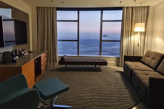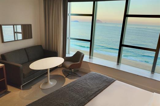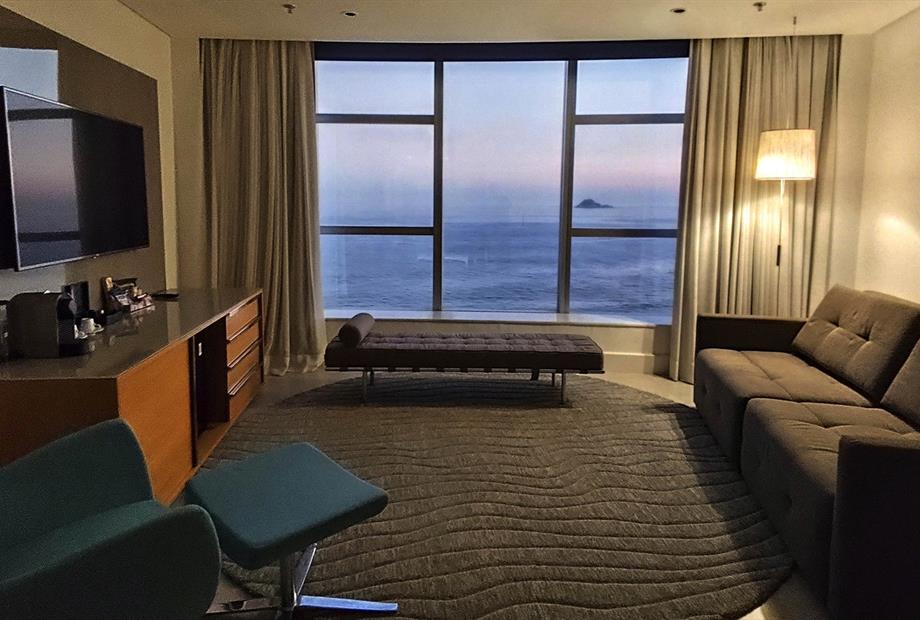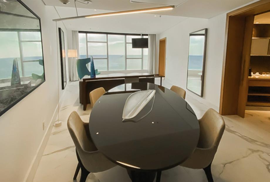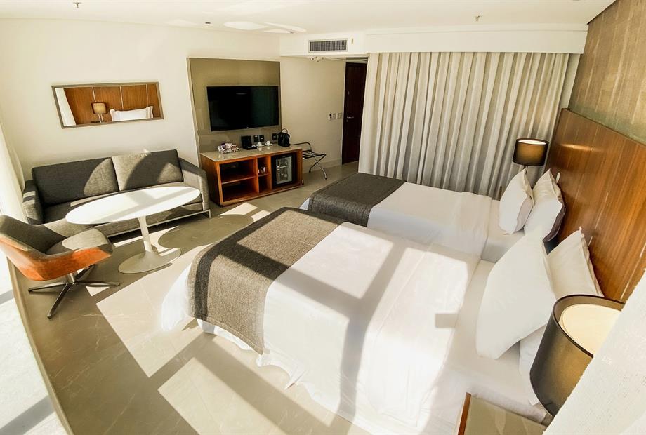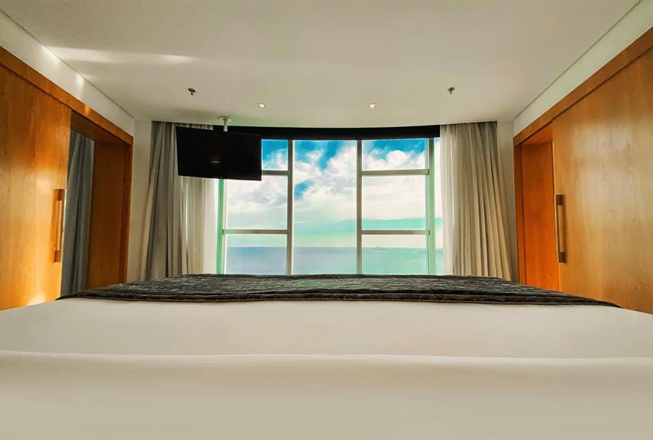 Com 64 m², possui vista para o mar, com 2 ambientes e cama king size. Na sala, há um sofá-cama para 1 adulto ou 2 crianças. Inclui sala de j...